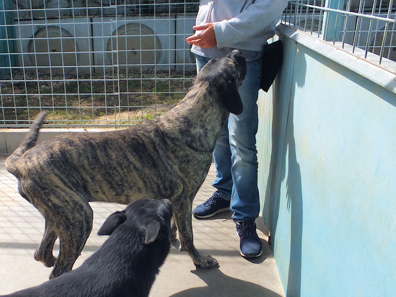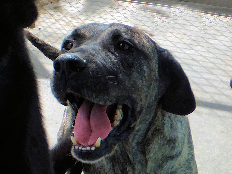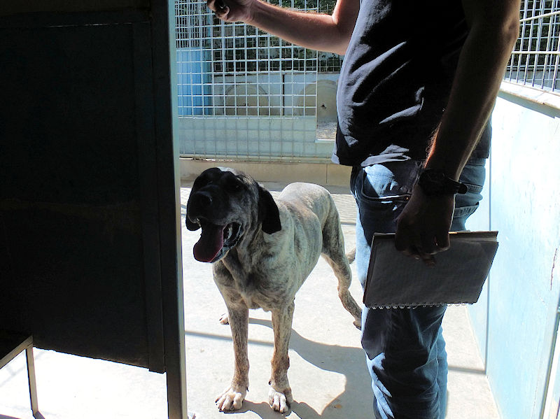 Quando arriviamo davanti al suo box, abbiamo un attimo di esitazione: insomma, entrare per la prima volta in un box con un cane che fa onore al suo nome…. ma poi …Golia ci sorride, tutto felice. E ogni titubanza passa, apriamo la porta ed entriamo. E lo potete vedere dalle foto che accoglienza ci ha riservato, tutto sorrisi, coccole e bacetti.