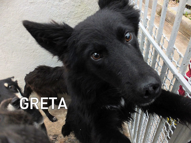 Lei è Gretafemminuccia carinissima nera con una riga bianca sulla zampetta . Nata a fine febbraio 2024 e finita piccola piccola in una busta di plastica pronta per morire soffocata ma salvata e poi in canile ad inizio marzo 2024 Orecchie dritte dritte e musetto simpatico, un amore di cagnolina socievole ed allegra . Taglia piccolina sui 13 kg