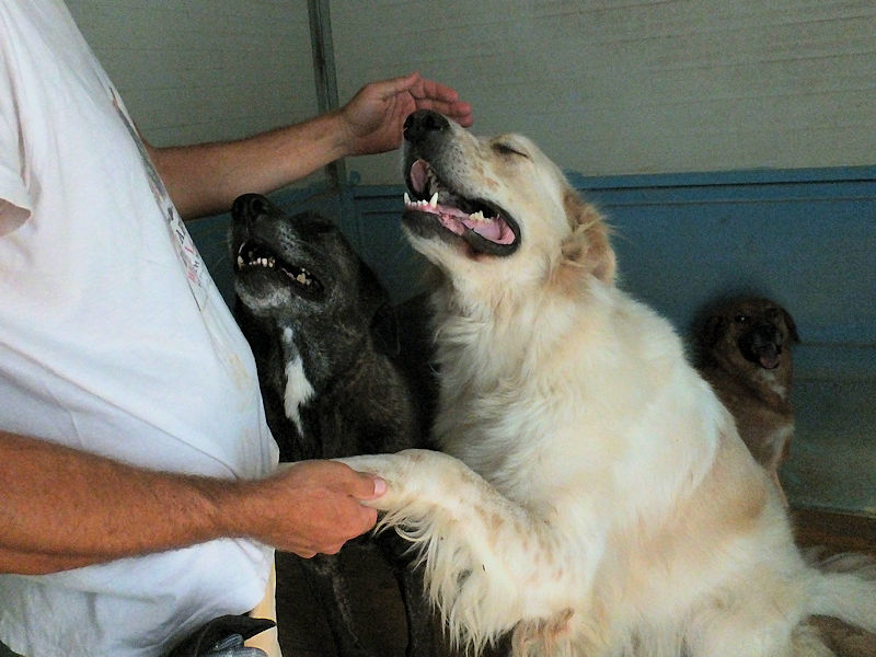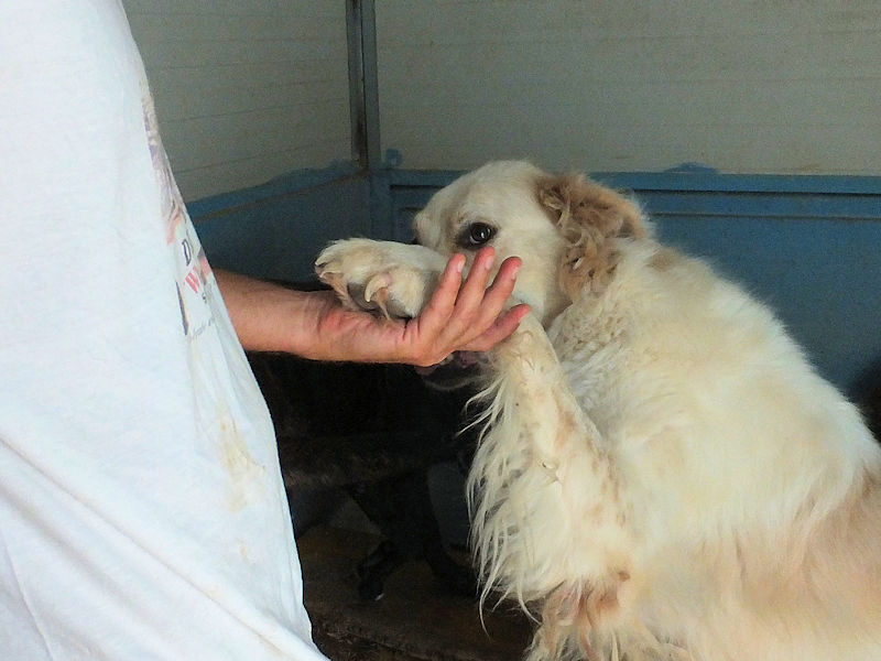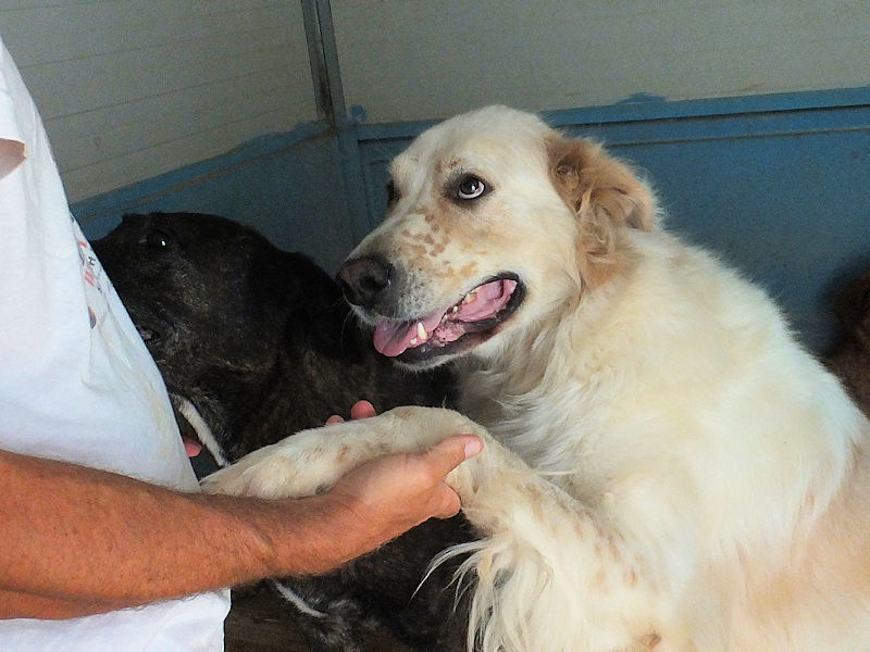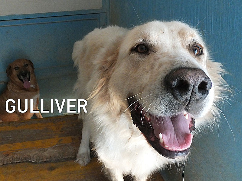 Gulliver meraviglioso mix tra un setter con la taglia da maremmano è una taglia grande, sui 40 kg alto ed atletico. Nato ad agosto 2020 per due anni ha vissuto con una famiglia di traditori che lo ha abbandonato per la strada facendolo finire in canile ad agosto 2022