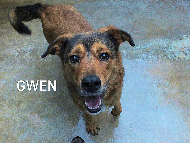 Gwen bella cagnolona di tipo Pastore è una taglia mediogrande, sui 32-34 kg. ben piazzata, massiccia. Nata s dryyr,ntr 2022, avev a poco piu’ di un anno quando è finita in canile a novembre 2023