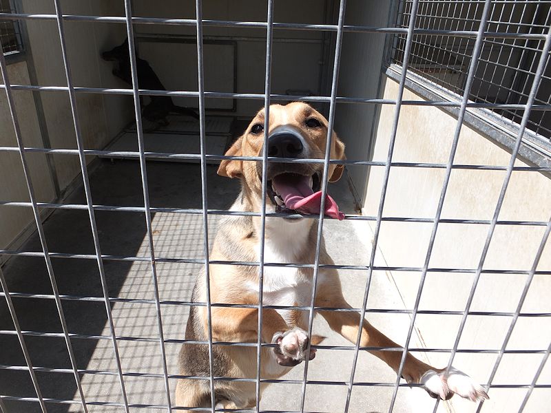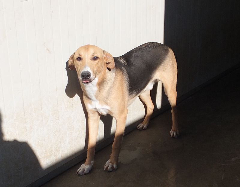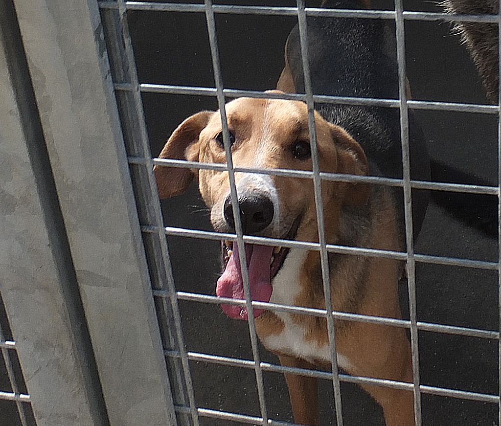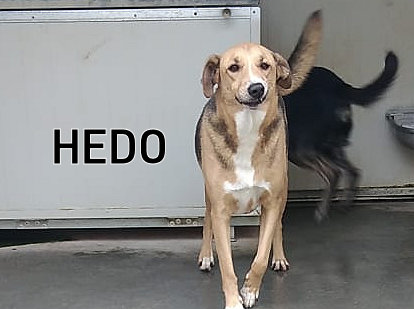 Hedo bel cagnolotto tipo segugio e allegro e simpatico, carinissimo che ci accoglie nel box tutto felice per la nostra presenza, eccitato al pensiero di avere compagnia. Ha un carattere gentile e convive con maschi e femmine senza problemi.