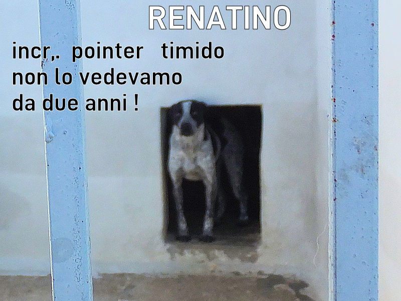Renatino è cresciuto in un box di canile e ci sta passando tutta la vita, è presto diventato schivo, pauroso, diffidente verso le persone che, d’altronde, vede davvero pochissimo. Nelle nostre visite di canile spesso non riusciamo neppure a vederlo, se ne sta nascosto nella parte interna del box senza neppure affacciarsi.