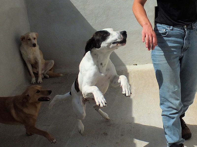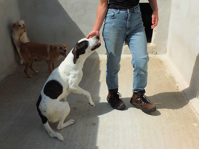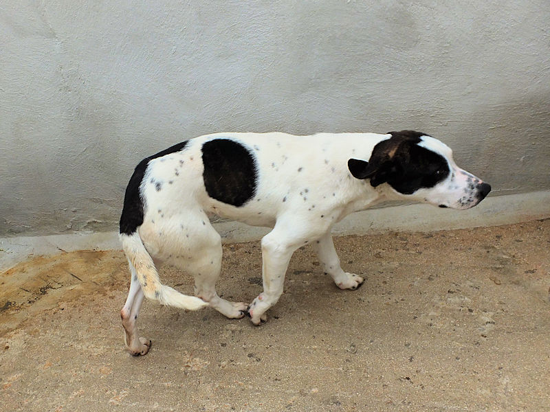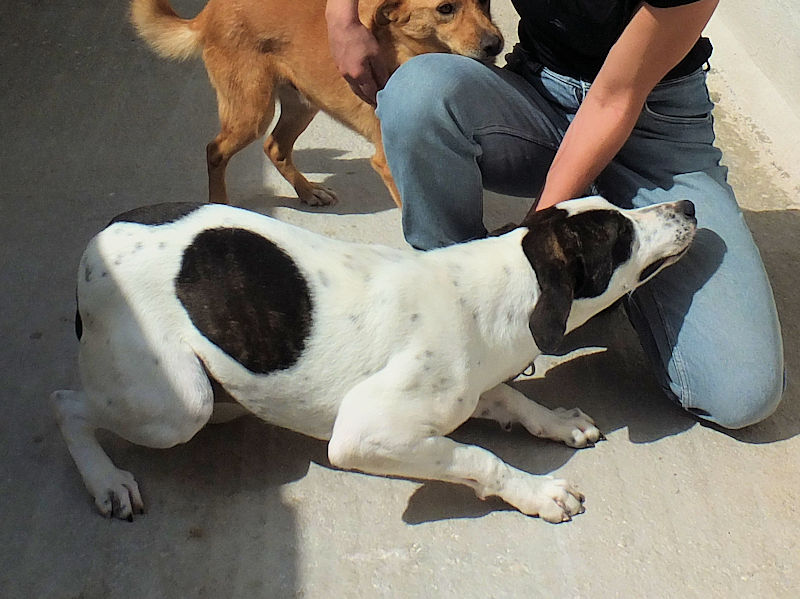 Soccorsa tutta dolorante, e portata in canile, si è pero’ ripresa molto bene e senza alcuna conseguenza  Buona, simpatica, allegra e socievole,  non ci ha lasciato un attimo per tutto il tempo che siamo rimaste nel suo box.  Davvero una dolce cagnolotta,  che peccato pensare che, forse, passera’ tutta la vita chiusa in quel box