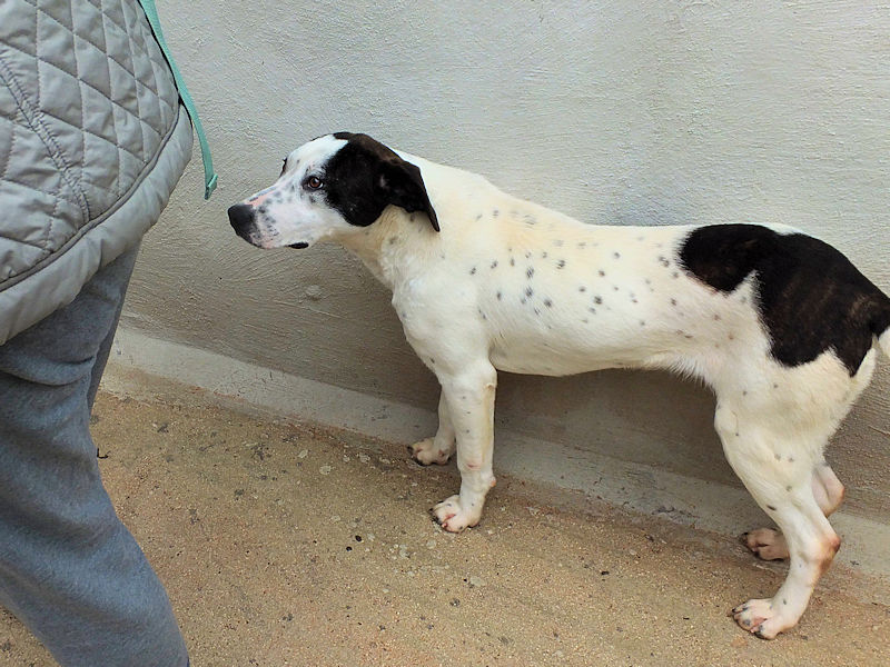 Ingrid bella cagnolotta tipo Pointer  è una taglia mediogrande sui 30 kg. Nata nel 2021, dopo 4 anni    è finita in canile a dicembre 2024