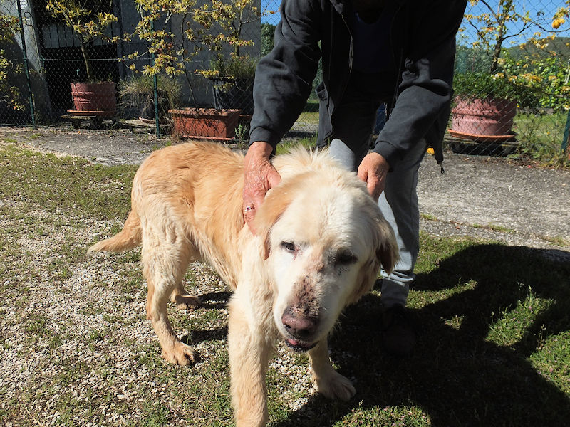 Leone splendido Golden Retriever   di tagli  ..regolare, sui 26 kg.  nato probabilmente nel  2012 forse perfino prima, scampato alla morte per miracolo  grazie all’Angelo Custode dei cani,  non vuole morire in un box di canile.