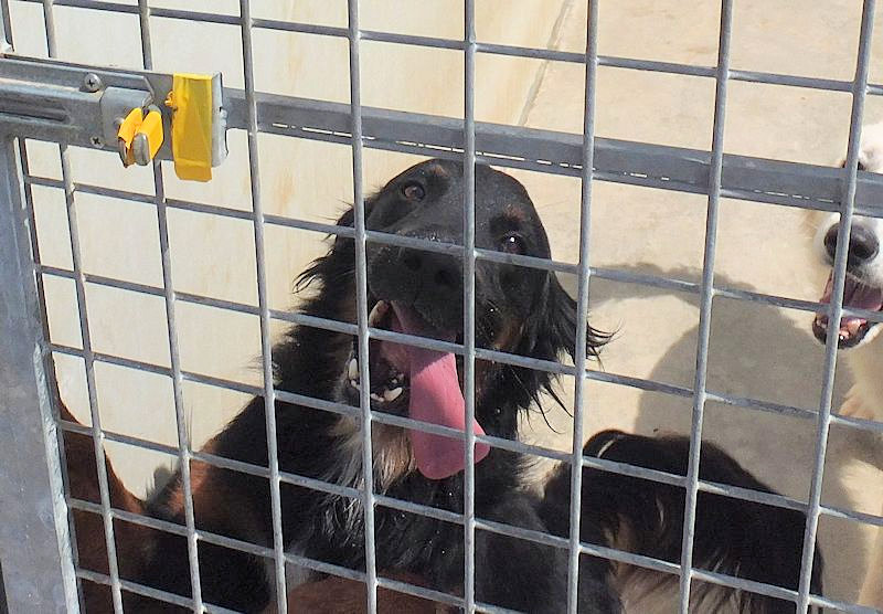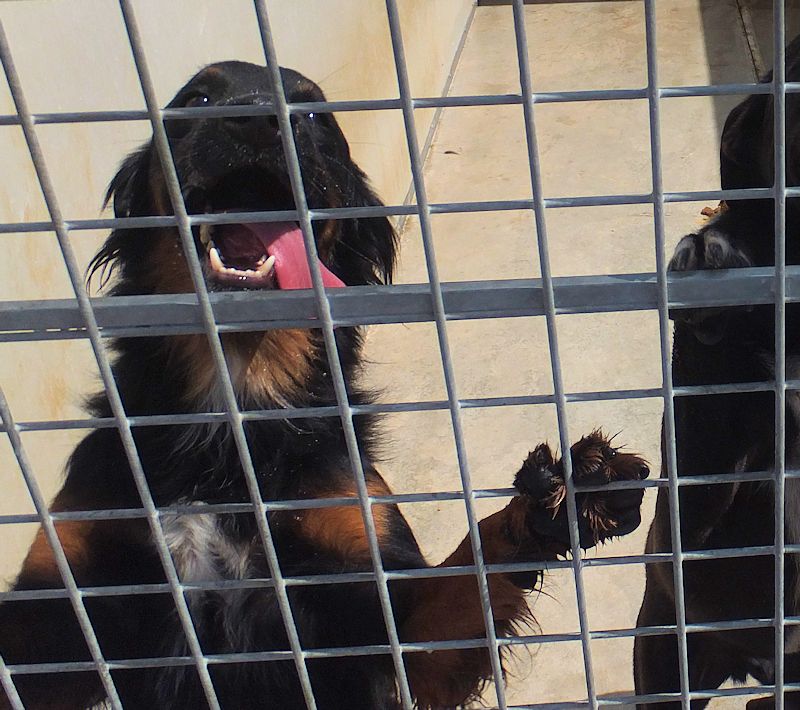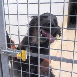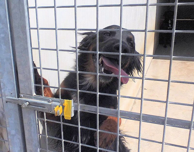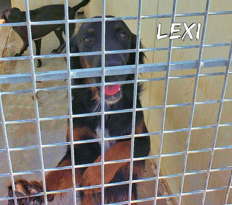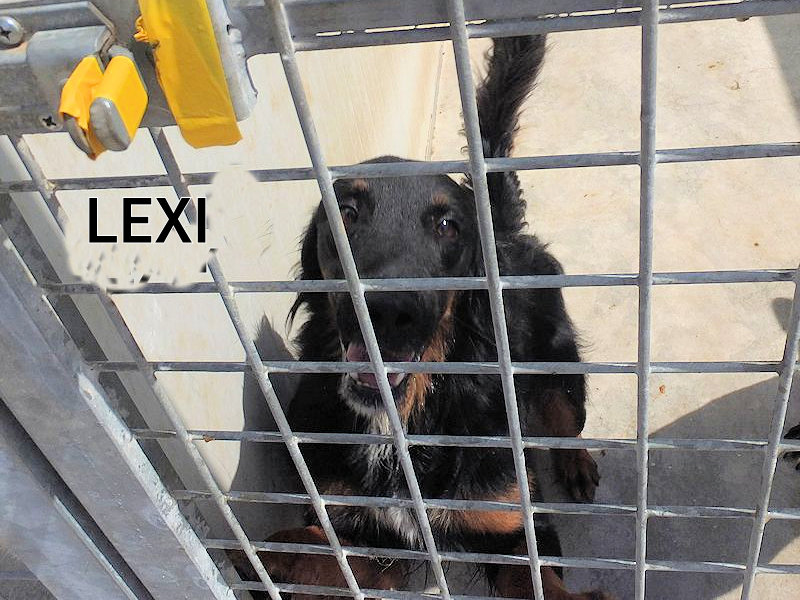 Lexi bel maschietto mix Setter Gordon   di taglia mediopiccola sui 14 kg, è nato a fine novembre 2014 ed è finito in canile a fine aprile 2015.  Ormai anziano, ha passato tutta la vita chiuso in un box di canile