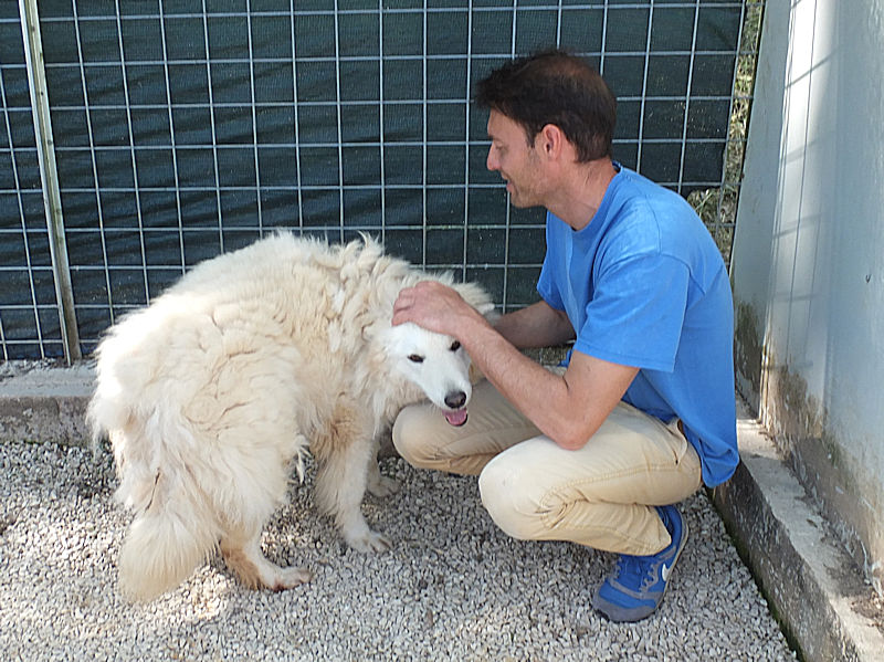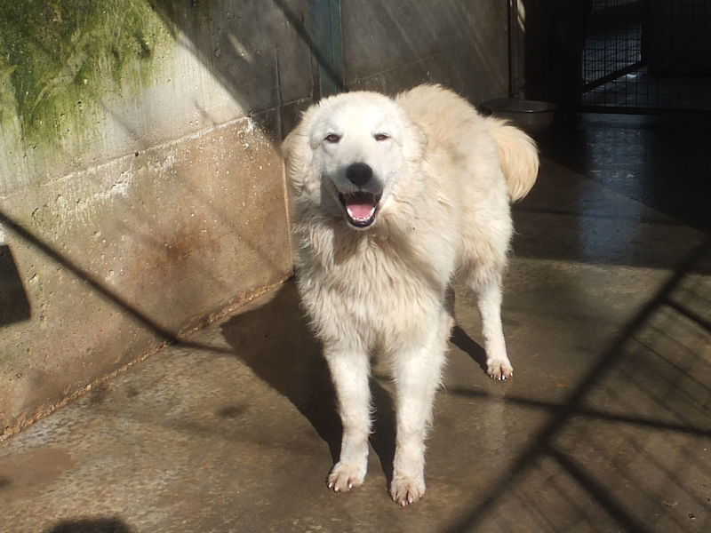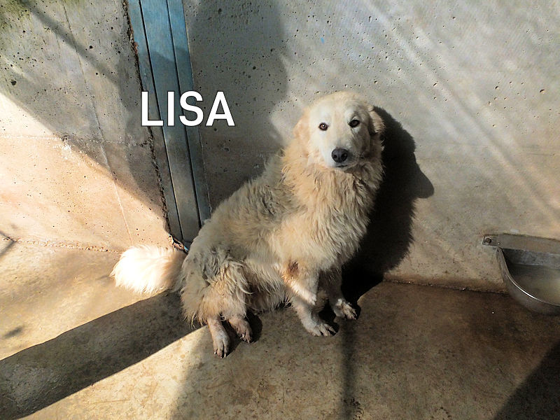 Lisa bella cagnolotta di tipo maremmana ma di taglia più modesta, sui 30 kg, è nata nel 2021 e aveva soltanto un anno o forse meno quando è finita in canile a luglio 2022.