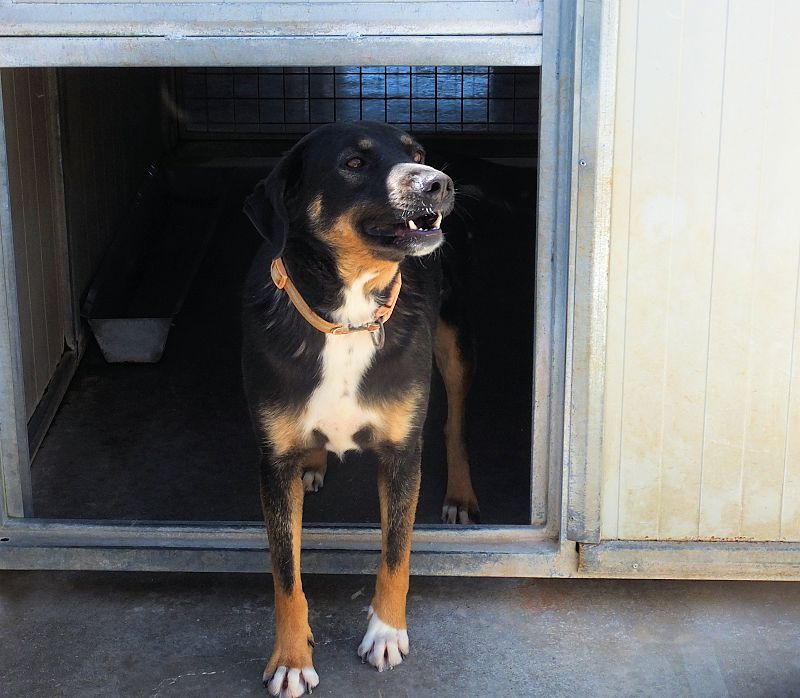 Forse si tratta di un abbandono di coppia, arrivata in canile insieme a Tobby, ora suo compagno di box, anche lui col collare al collo !