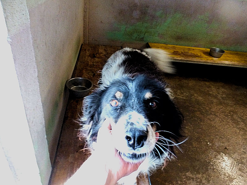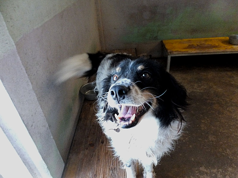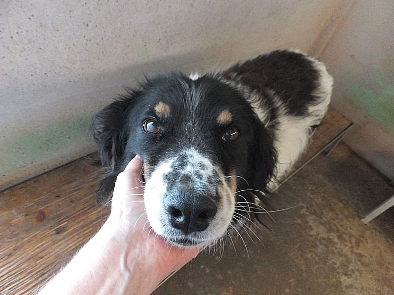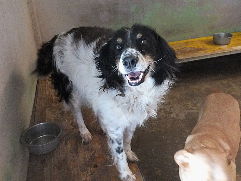 Ci accoglie nel suo box per la prima volta come fossimo già vecchi amici, entusiasta per la nostra presenza, disponibile da subito, sorridente… Questo è un cane da adottare subito, da portare subito via da quel box.