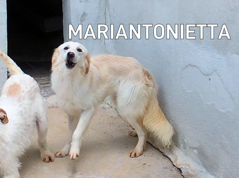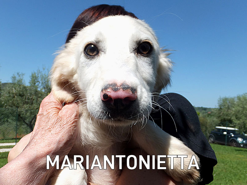 Marioantonietta fa parte di una cucciolata indesiderata, di quelle che continuano a nascere nella casa di chi non spende soldi per sterilizzare il proprio cane e preferisce buttare via i cuccioli che continuano a nascere. Alcuni sono stati adottati, altri, come lei, aspettano ancora di trovare una famiglia amorevole