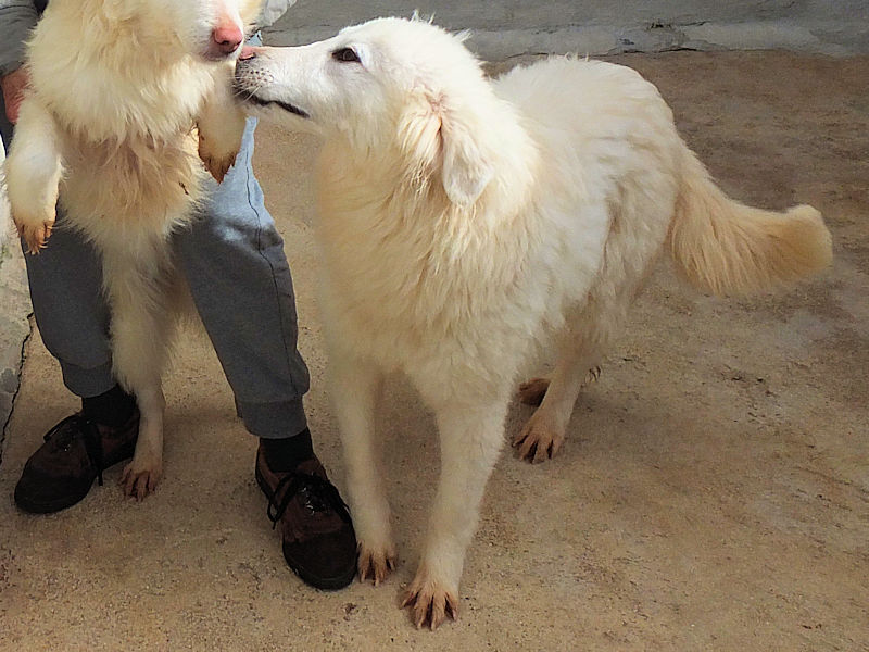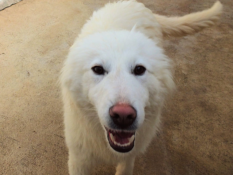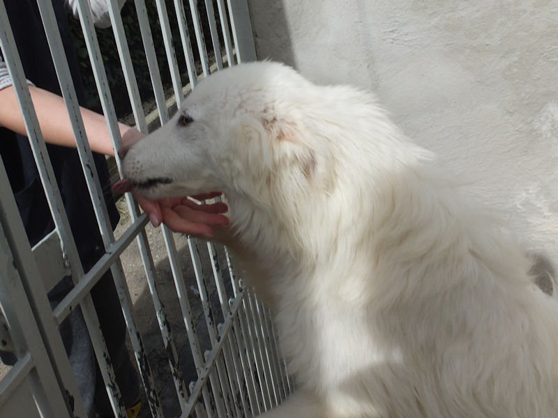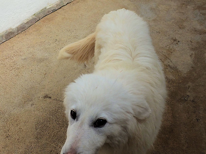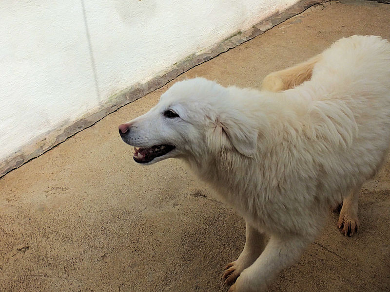 Bella e bbuona, allegra e simpatica, socievole gentile, compatibile anche con femmine. Ecco  chi è  Mavi , bella maremmana    abbandonata da cucciola , buttata per la strada. Forse faceva parte della cucciolata di qualche pastore,  che non sterilizza  le proprie femmine perchè altrimenti poi, seocndo lui, non lavorano piu’.  E quando  inevitabilmente nascono i cuccioli, se ne tengono uno o due da rimpiazzo, e  scacciano via gli altri cuccioli a colpi di pietra. Quelli che capiscono che devono andarsene, ovviamente. Gliu altri, quelli che si ostinano a tornare….non commentiamo sulla loro fine.