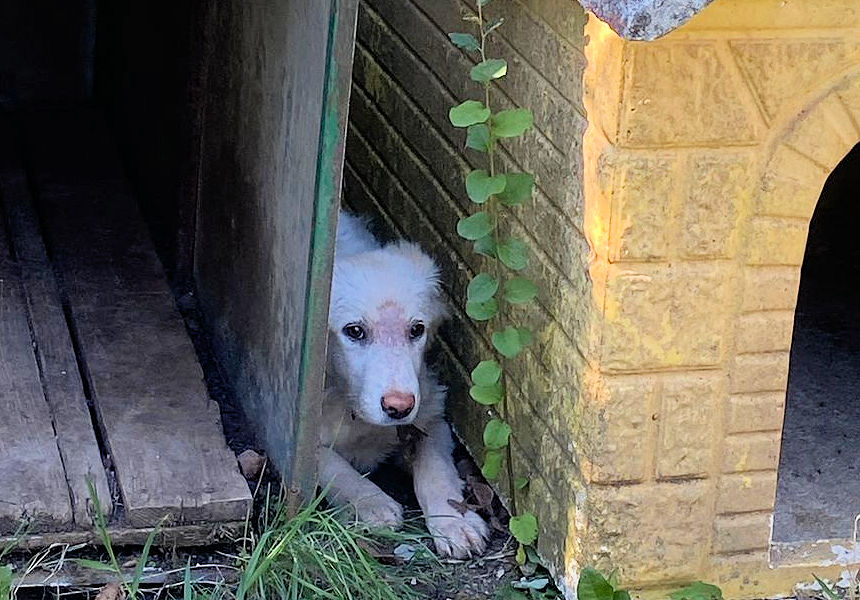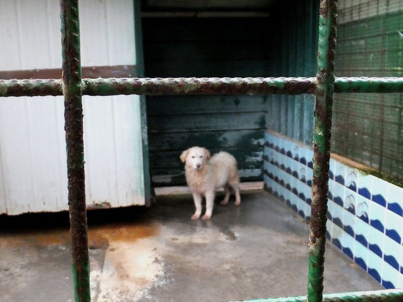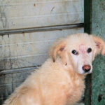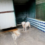 Mila bella cagnolina bianca è una taglia media sui 18-20 kg. Nata ad aprile 2022, aveva solo due mesi quando è finita per la strada e poi in canile.