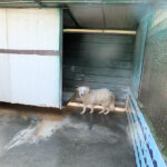 Quando siamo fuori dl box, è curiosa, si vede che vorrebbe avvicinarsi ma i compagni di box, sempre esuberanti e vivaci, la preoccupano e allora resta indietro a guardarci. Se entriamo nel box, si preoccupa ancor di piu’ e si va a nascondere nella parte interna del box.
