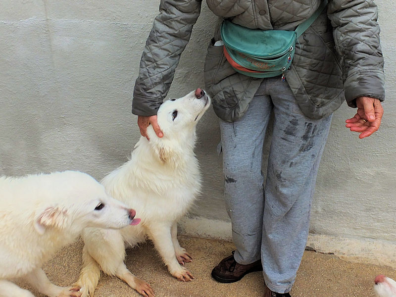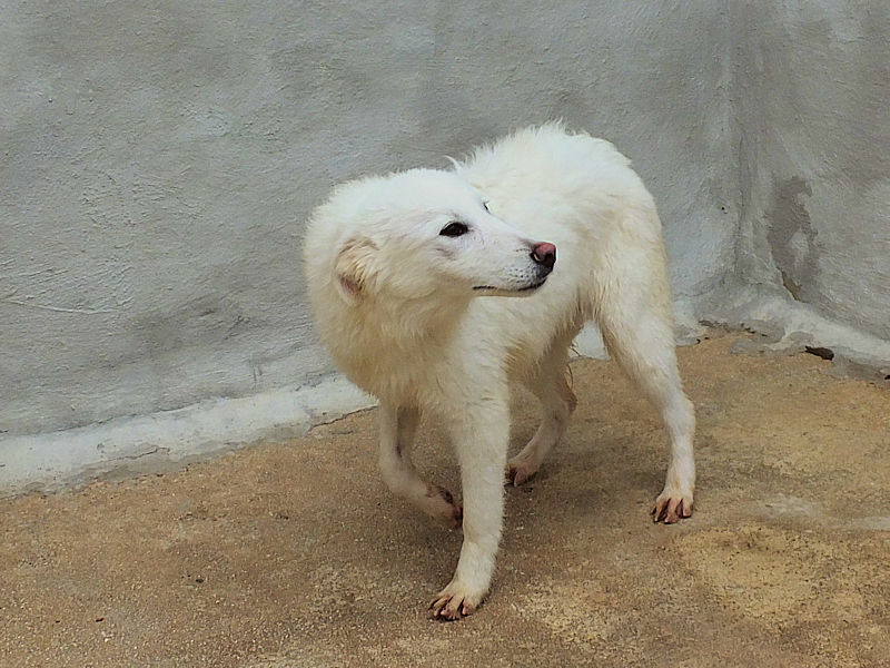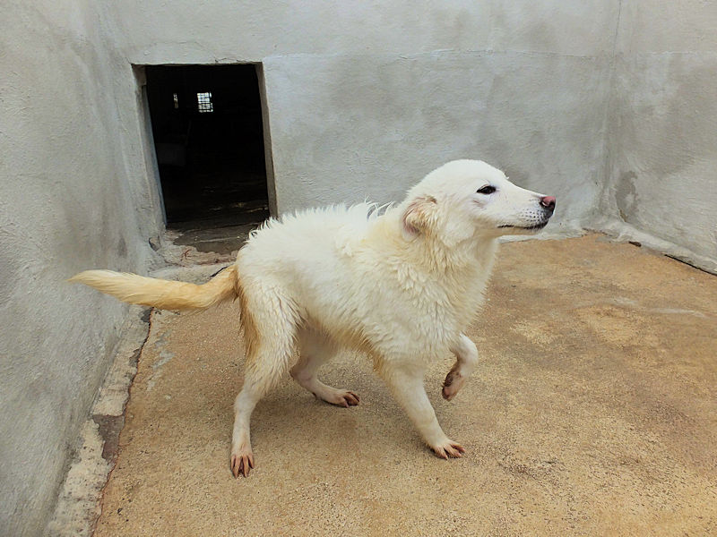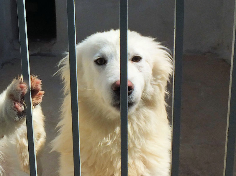 Mino splendido falso maremmano   è una taglia decisamente contenuta, ad 8 mesi pesa sui 17-18 kg.   Nato a febbraio 2024, a soli due mesi si è ritrovato in un box di cnaile ad aprile 2024