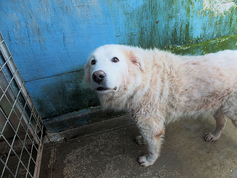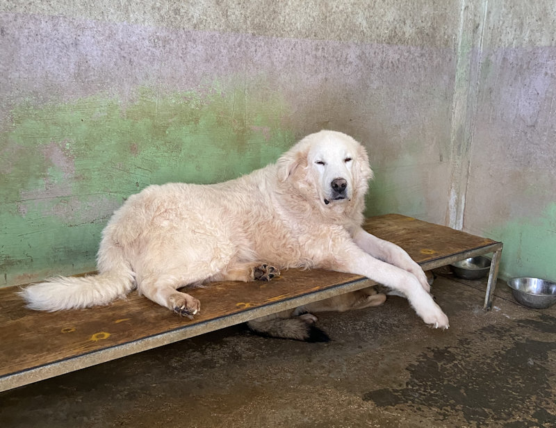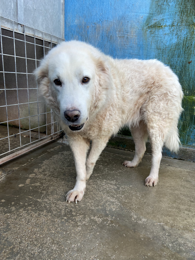 Muffin bel maremmano di taglia grande, sui 40-45 kg è nato  a dicembre 2022 ed  è stato abbandonato finendo in canile ad un anno soltanto, a dicembre 2023