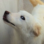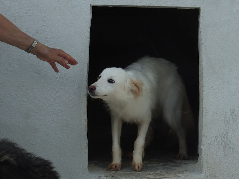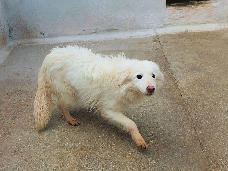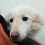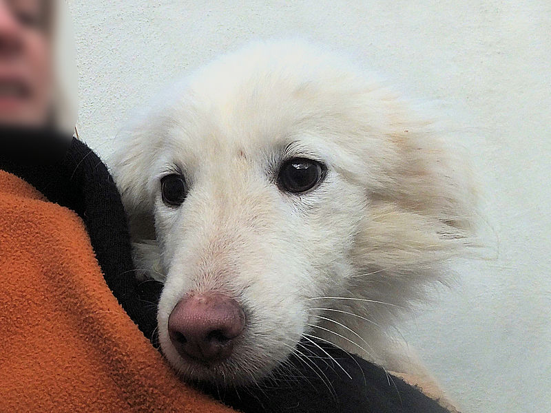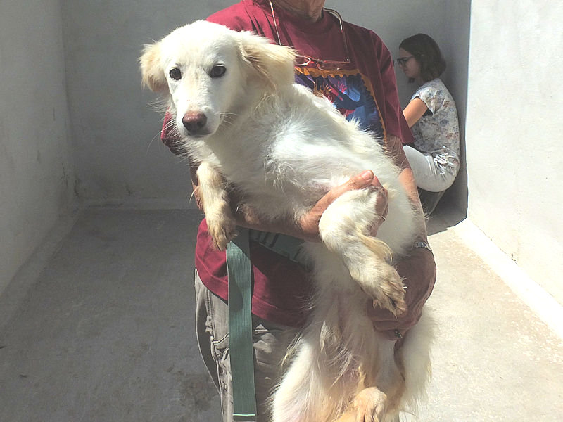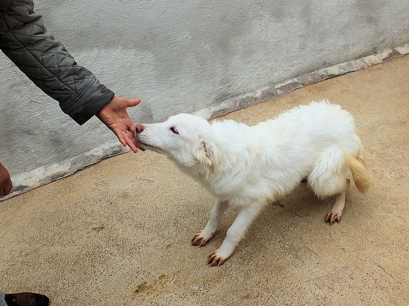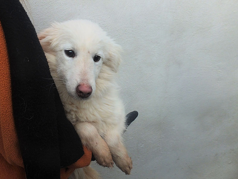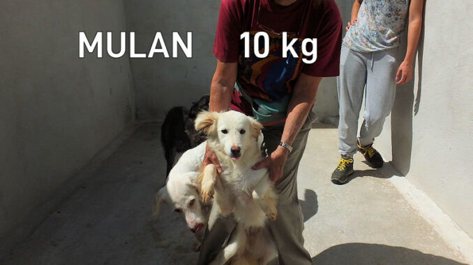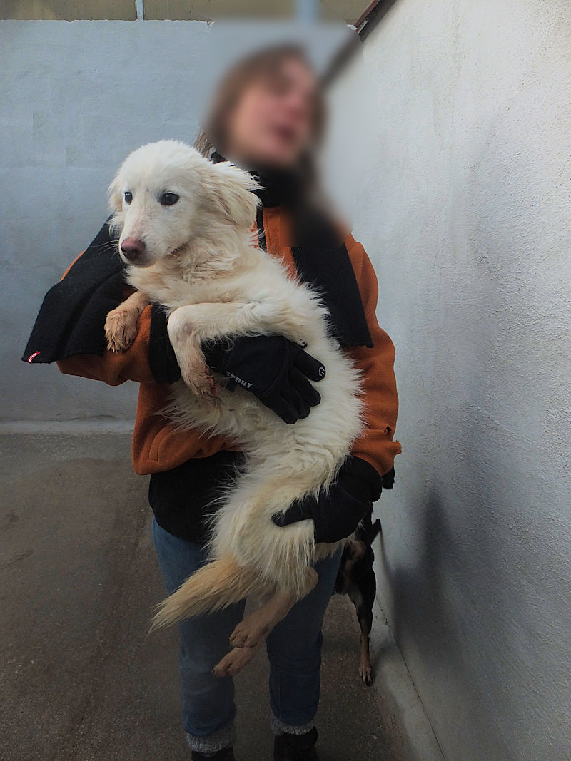 Mulan splendida falsa maremmana è una taglia decisamente contenuta, SUI 14 KG . Nata a febbraio 2024, a soli due mesi si è ritrovata in un box di cnaile ad aprile 2024