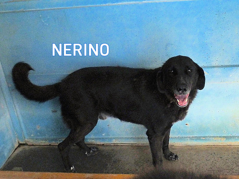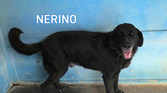 Nerino è un comune cagnolotto nero, un tipo come tanti, ma con un …sorriso che incanta, con tanta gioia di vivere nonostante gli anni che sta passando in canile. Aveva una casa, aveva una famigli, che, come al solito, ha pensato bene di abbandonarlo per la strada quando aveva quattro anni. no, un cane per la strada, un vero randagio, uno che, per la strada, ci nasce, non ci arriva a quell’eta’, viene stroncato molto prima da malattie, investimenti, fame e cattiveria umana. Dunque Nerino aveva famiglia, e si è ritrovato all’improivviso inchiuso in un box di canile.