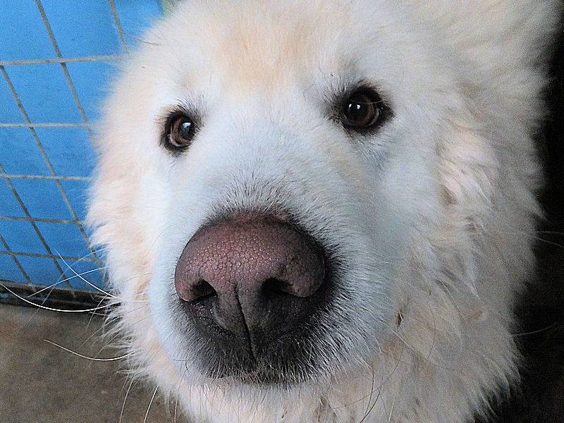 Neve bel maremmano di taglia grande sui 40-45 kg nato a novembre 2016 e finito in canile a quasi 4 anni a novembre 2020.