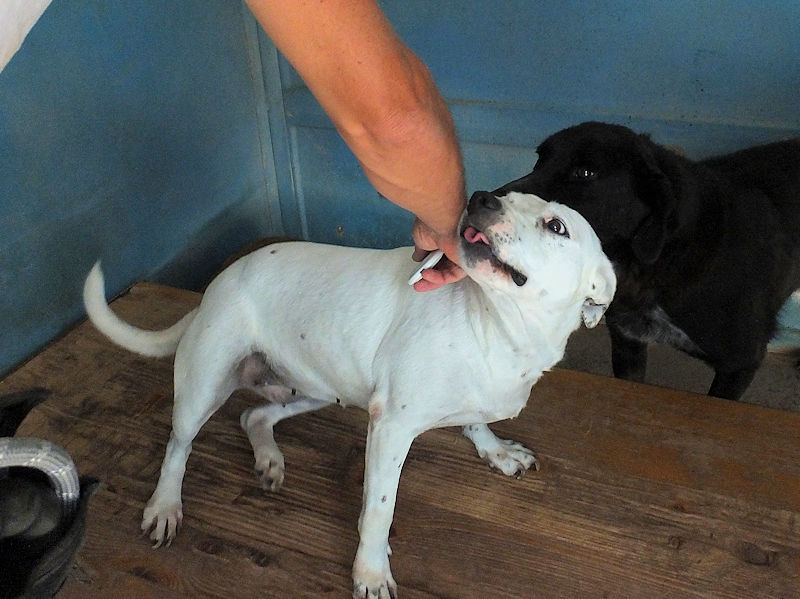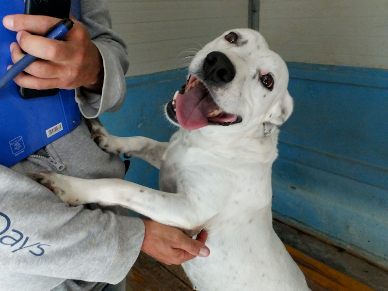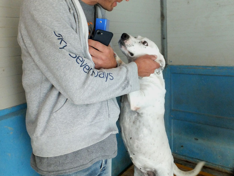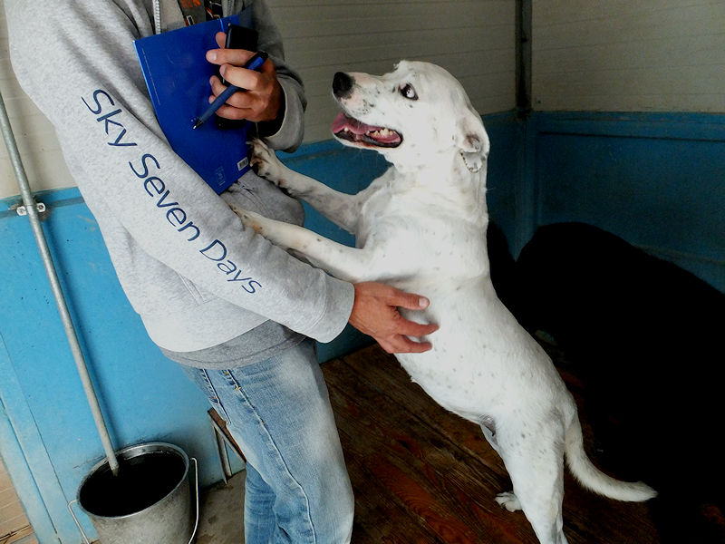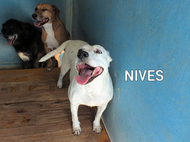 Socievole ed affettuosa con le persone, Nives è compatibile con cani maschi, convive in box con tre cani senza problemi. Ci ha accolto con entusiasmo,  felice di fare amizizia e di prendersi qualche coccola, e, forse, con la speranza che la avremmo portata via da quella prigione.