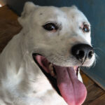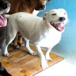 Nives è una molossina di taglia  piccoletta, bassa ma muscolosa,  sui 18 kg  ma bassa di statura. Nata  a giugno 2018, a giugno del 2019 era gia’ finita per la strada e poi in canile.