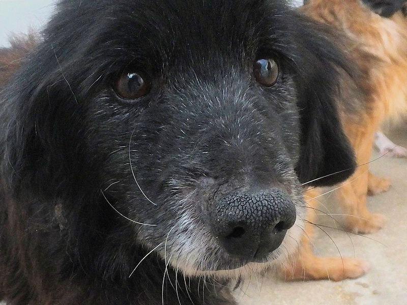 Nonno nero è un cagnolino dolce e gentile,  nato nel 2010 e abbandonato a 15 anni finito in canile  nel 2025