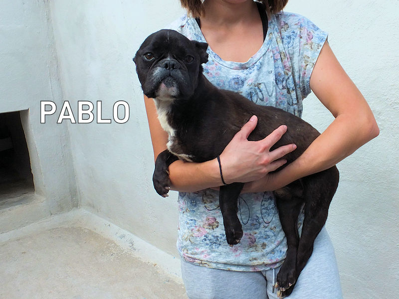 Pablo è stato curato per tutte queste…disgrazie, ed ora sta bene. Ma i Bouledogue sono cagnolini delicati, soffrono tanto il caldo, un box di canile non è posto per loro.