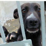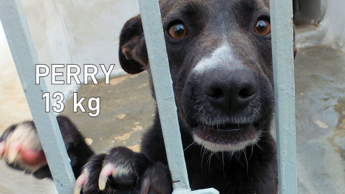 Perry finisce per la strada e poi in canile.   Perry  non lo sa, per questo è cosi’ allegra, ma corre il serio rischio di passare in quel box tutta la vita. Perchè è nata in una zona dove i cani si abbandonano e non si adottano.