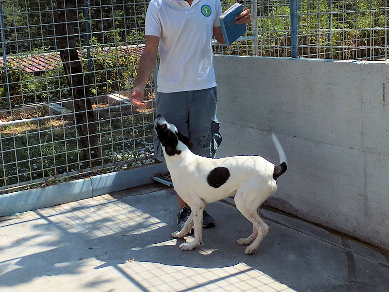 Un bravo cagnoletto, per lui cerchiamo adozione con una famiglia giovane e dinamica, è un cane pieno di energia e vitalità, non lo lasciamo intristire in quel box.
