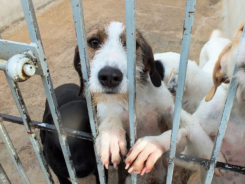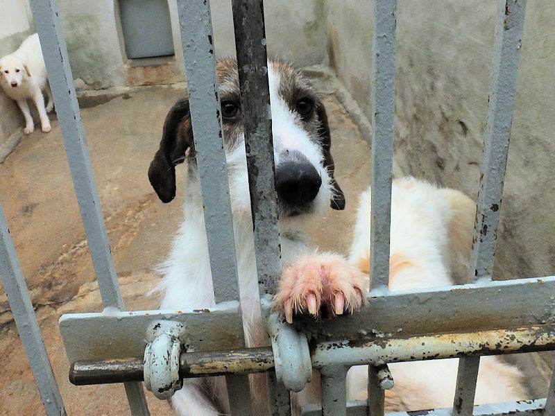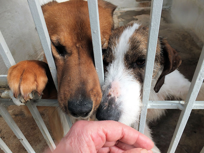 Ora si trovano in un box di canile, rogna e parassiti non ci sono piu’, la magrezza eccessiva sta sparendo .