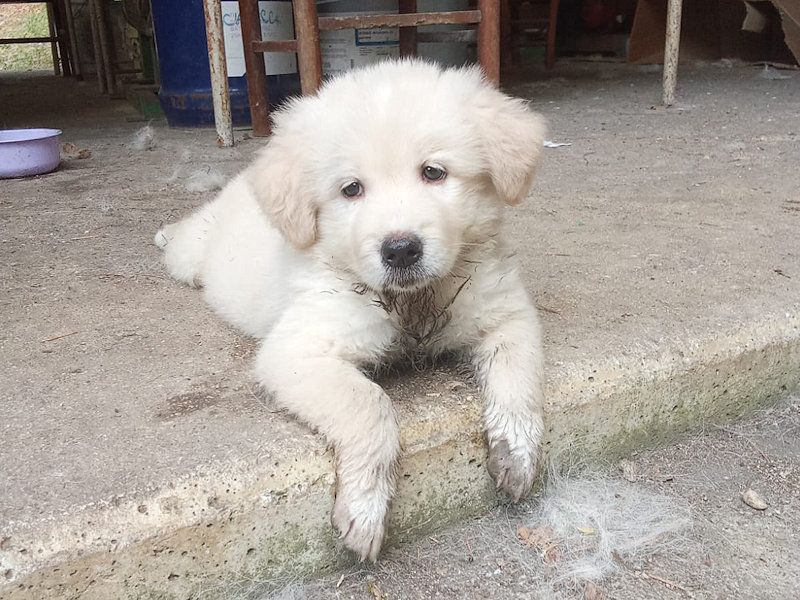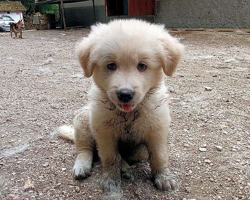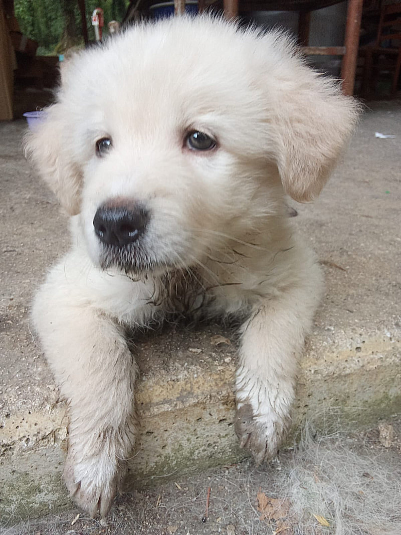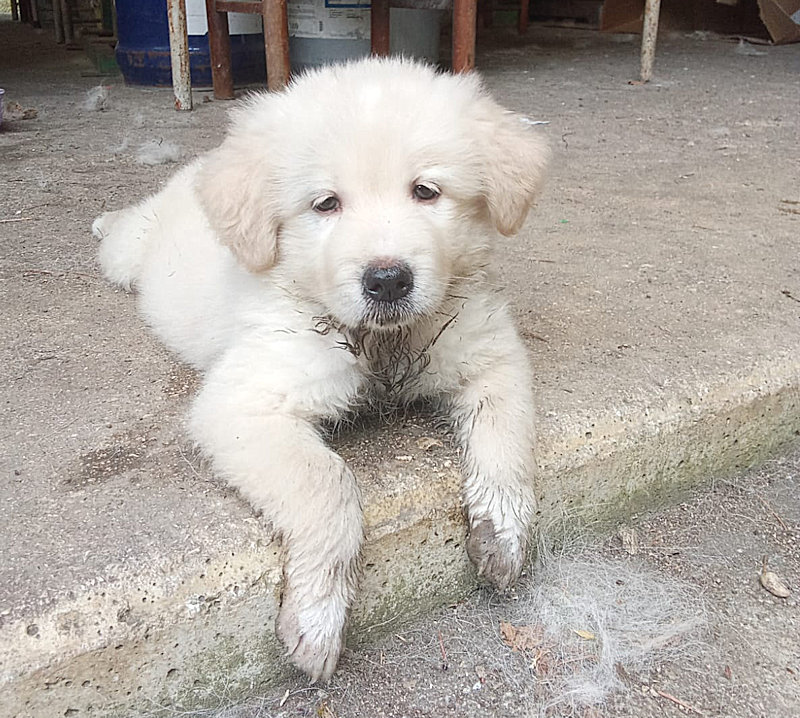 Splendido cucciolo tipo Spinone cerca famiglia amorevole ed affettuosa. Nato 25 aprile e trovato abbandonata a un giorno o due, insieme con la sorella Peggy, è atato allattato ed accudito amorevolmente da una volontaria, e tra poco sara’ pronto per cominciare una vita con la famiglia che vorra’ adottarlo.