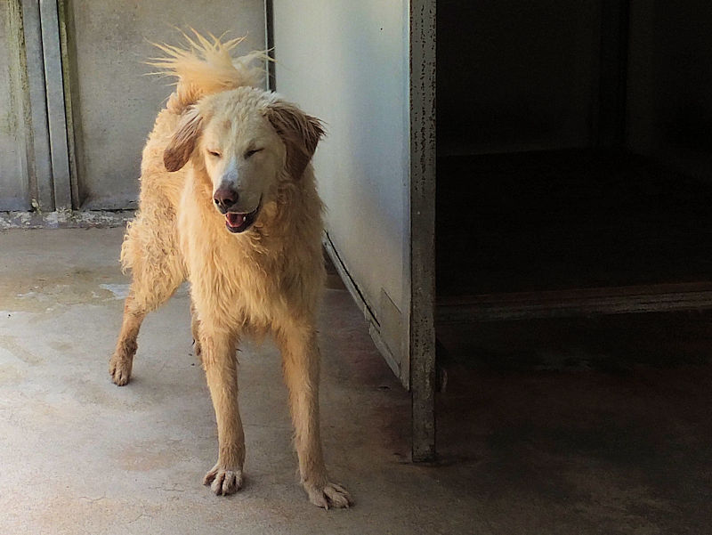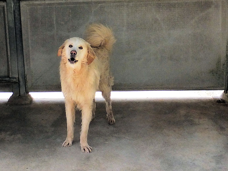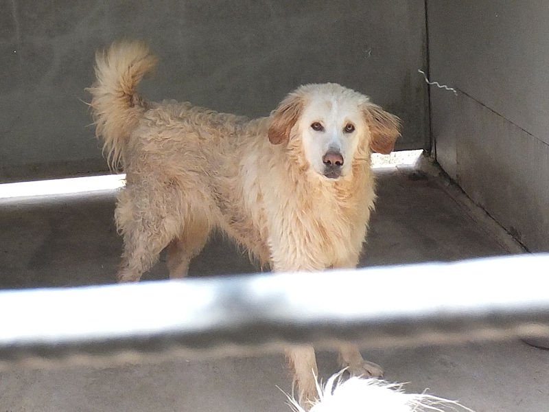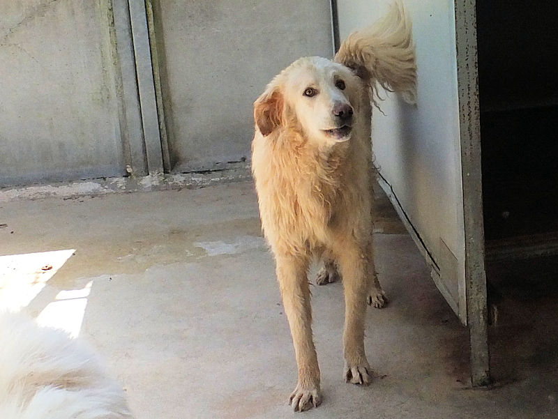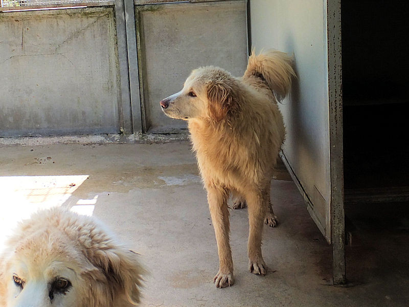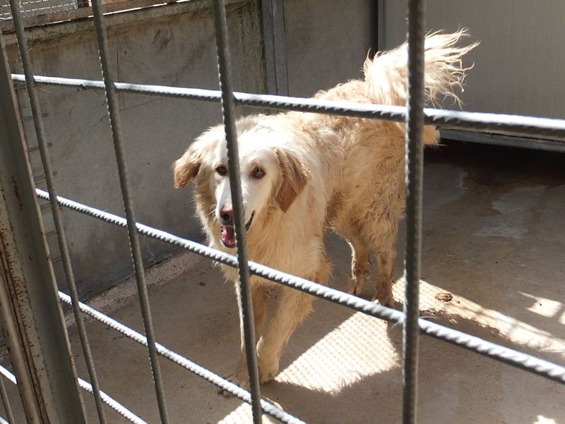 aprile 2024 – finalmente appare nel box  del canile …ed ha un anno !