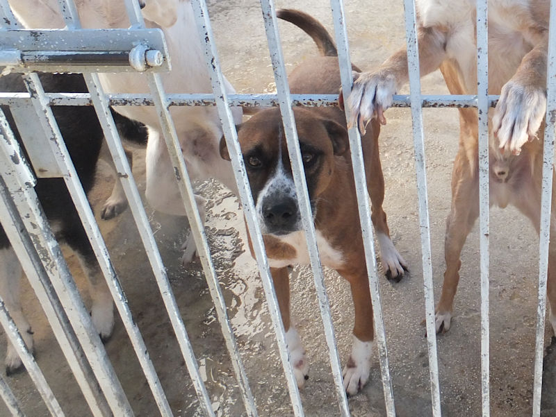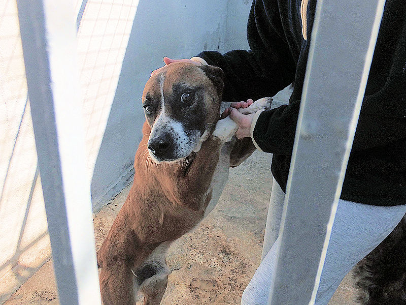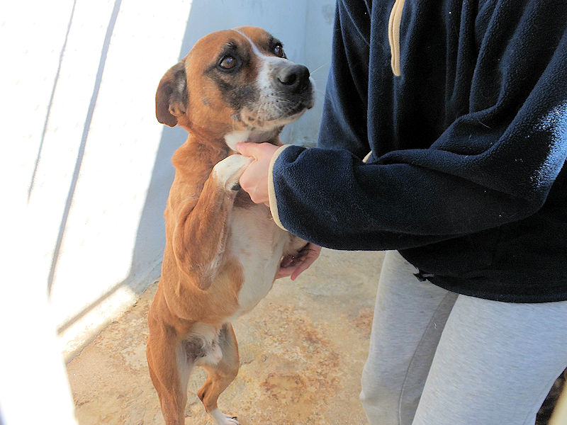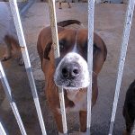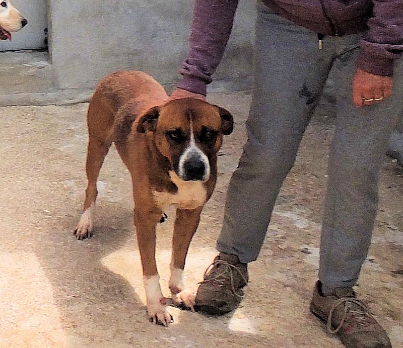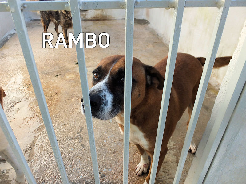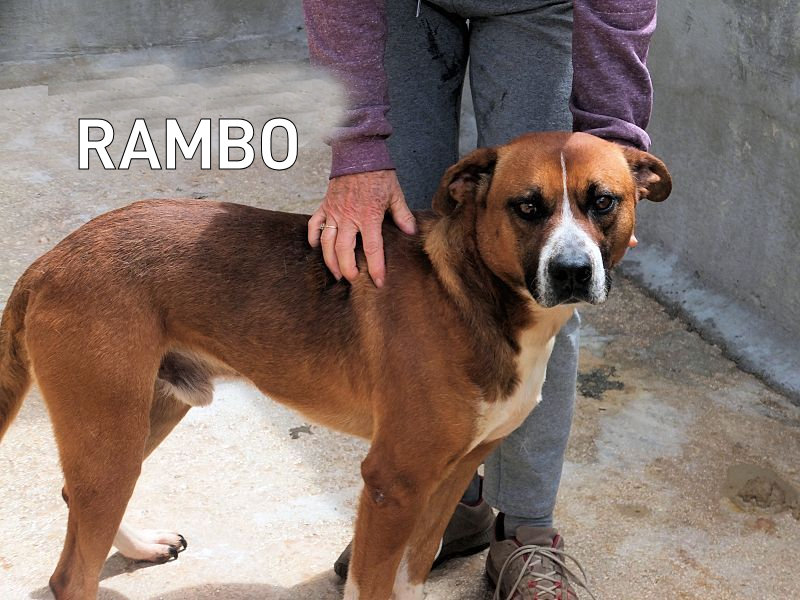 Rambo è un bel maschiotto tipo Boxer di taglia medio grande, attualmente pesa sui 30 kg, a forza di farlo mangiare per fargli superare lo stato di dimagrimento adesso è un pochetto ciccione, dovrebbe pesare 3-4 kg di meno! nato nel 2014, abbandonato e, finito in canile a febbraio 2019. Bel carattere, bel cane, insomma un amico da fare uscir subito dal canile.