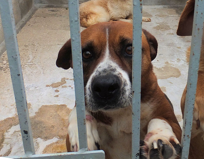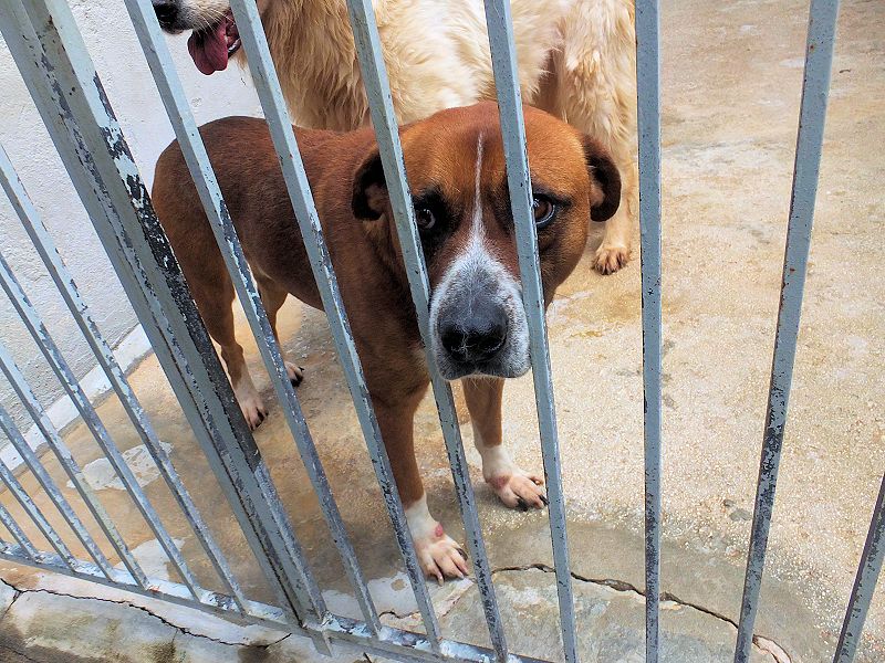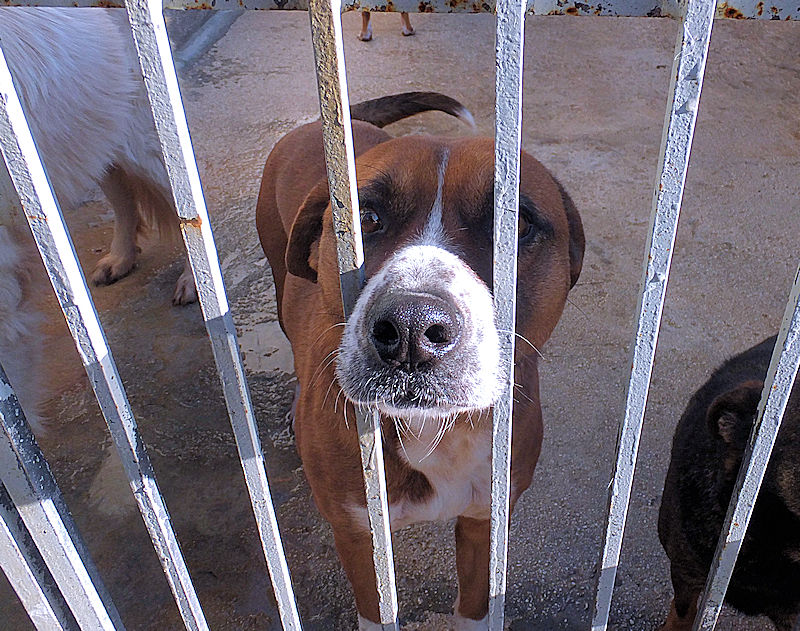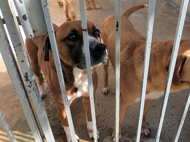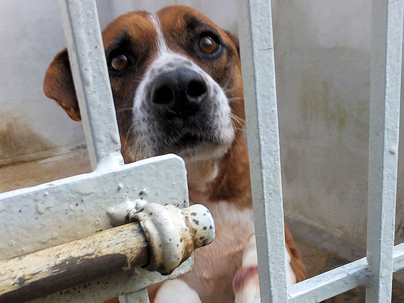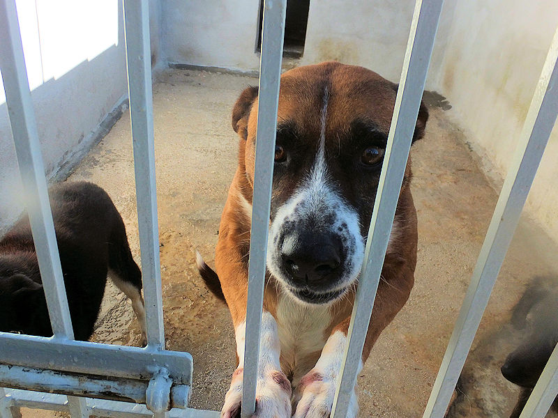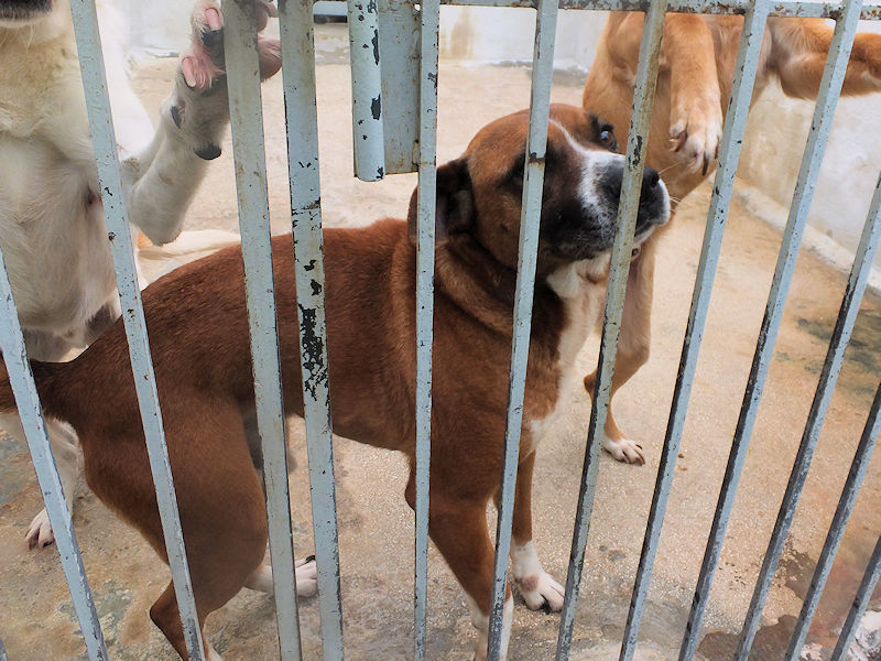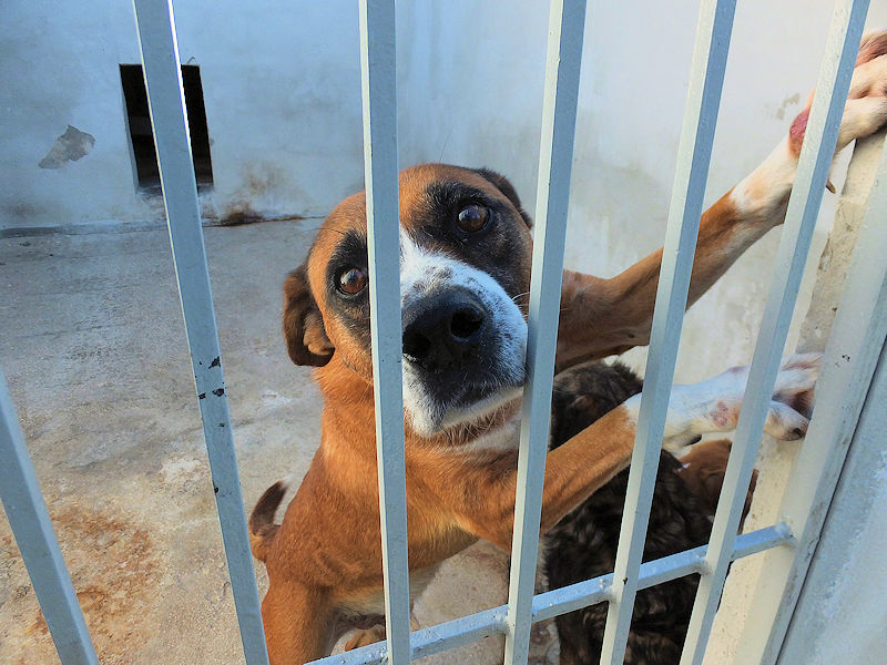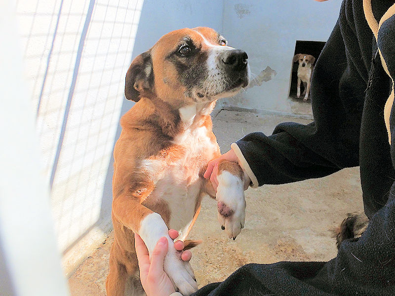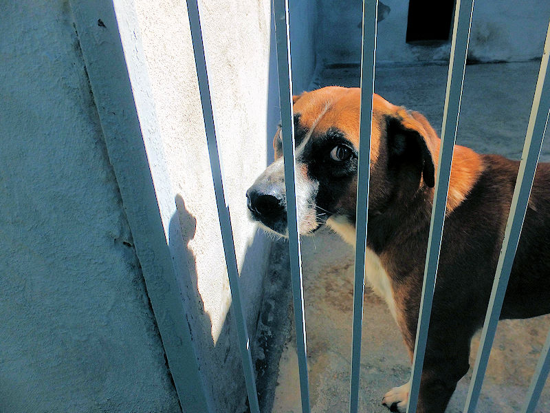 Rambo è un cane proprio simpatico, alla nostra prima visita ci accoglie subito con amicizia, pronto a farsi coccolare, desideroso di una carezza, e sopratutto speranzoso di poter uscire da quel box.