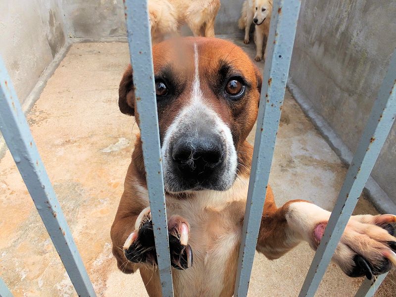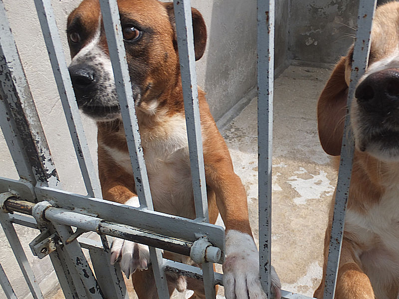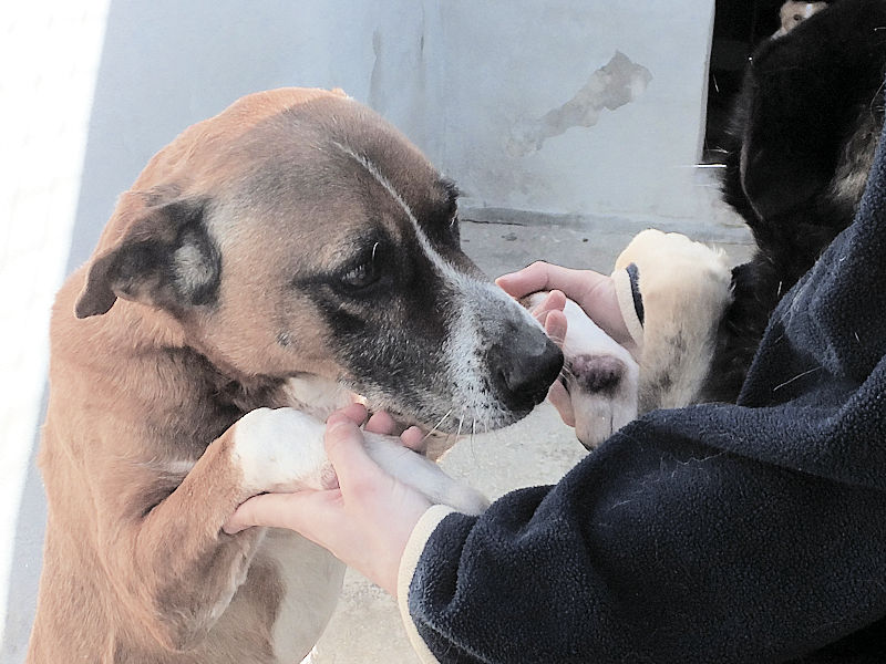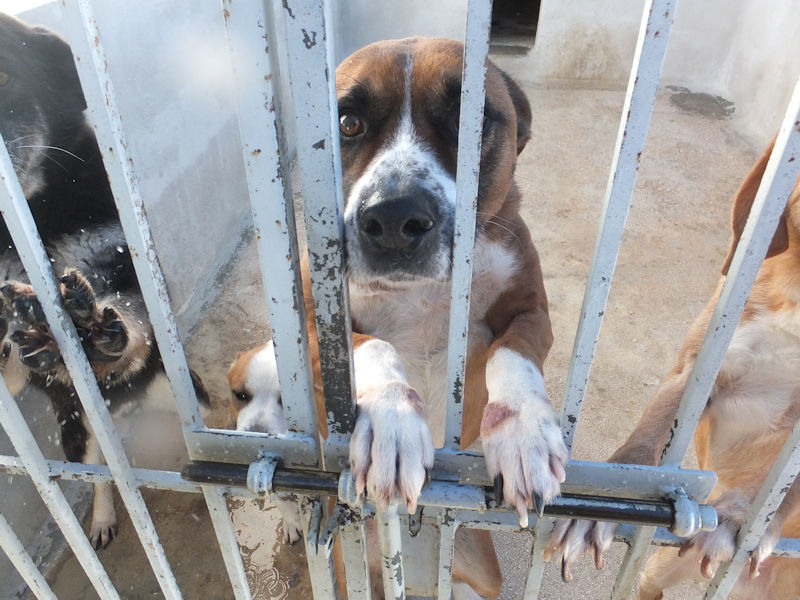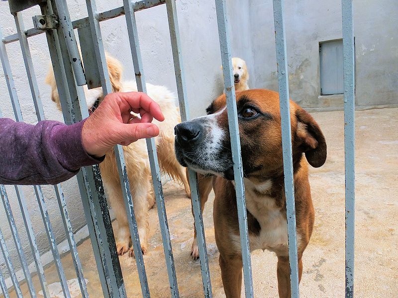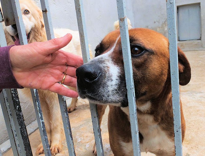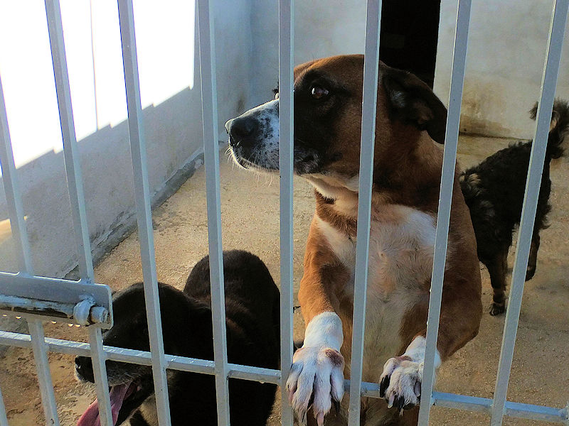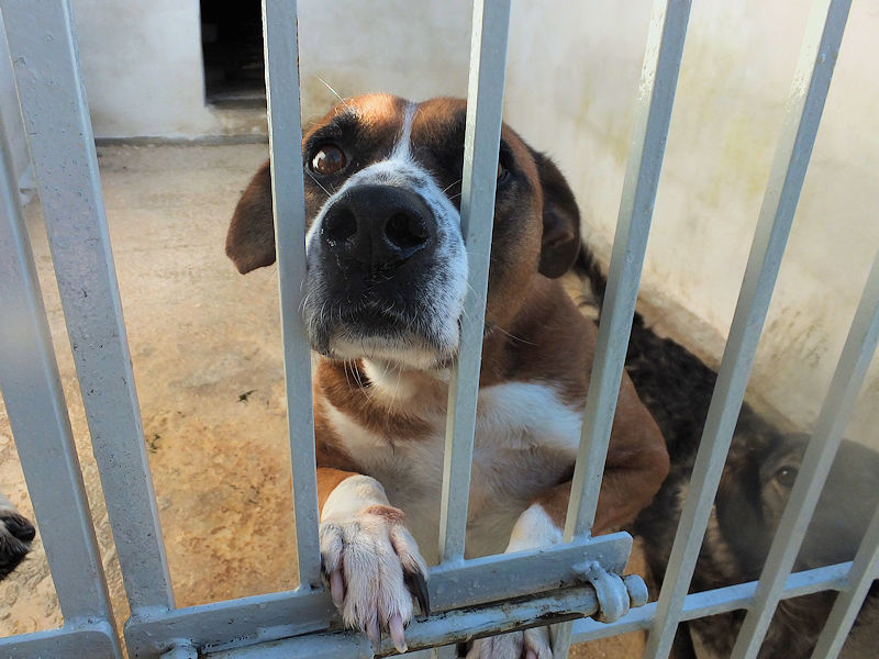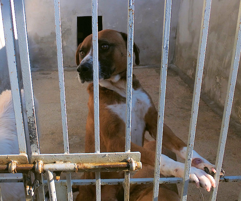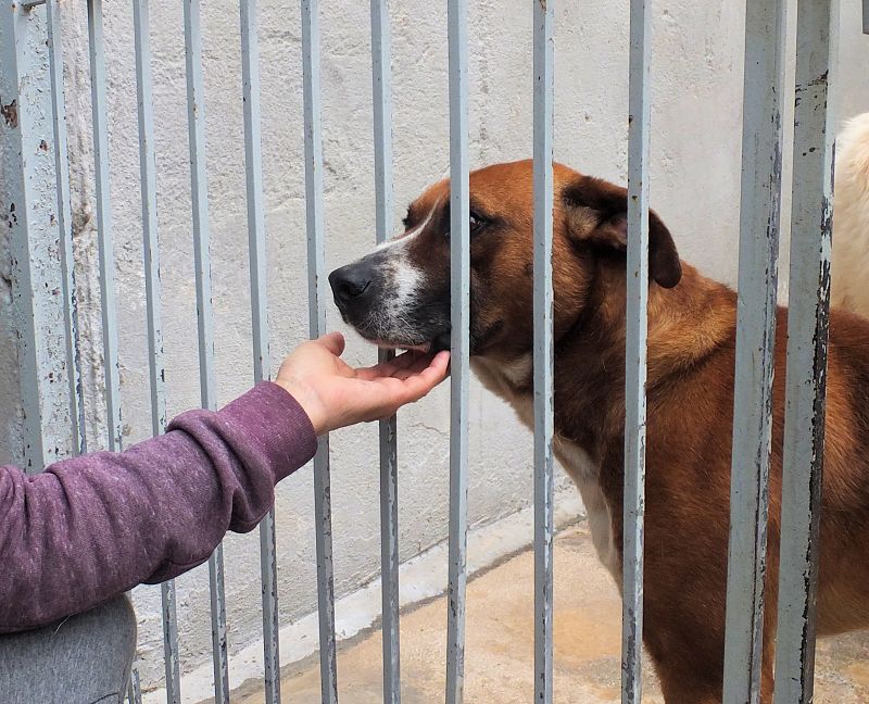 Rambo è un cane proprio simpatico, alla nostra prima visita ci accoglie subito con amicizia, pronto a farsi coccolare, desideroso di una carezza, e sopratutto speranzoso di poter uscire da quel box.