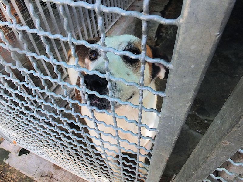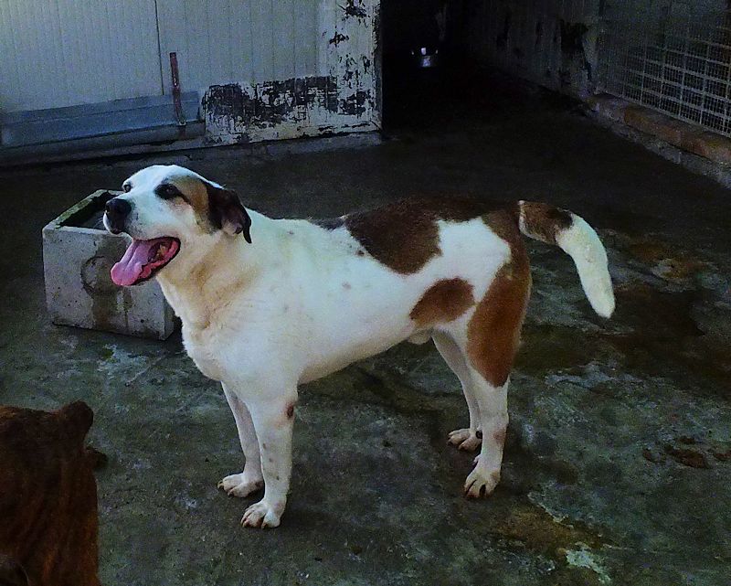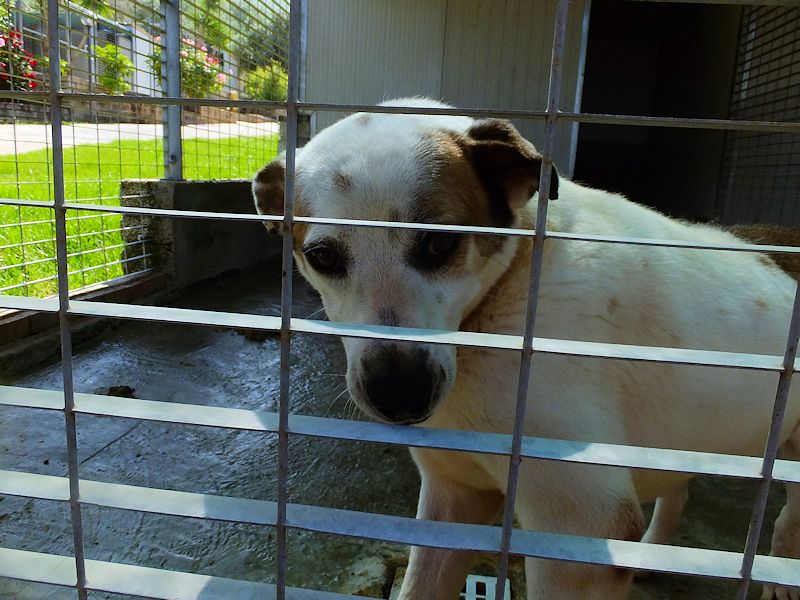 Rocco cagnolone di taglia mediogrande sui 28 kg. è finito in canile nel 2012 dopo avere vissuto in una casa, nato probabilmente nel 2010 Positivo alla leishmania 1/180