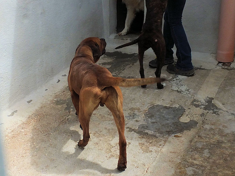 Ci ha dato l’impressione di un cane tranquillo, ben compatibile con altri cani, vive in box con un maschio maremmano ed una femmina pitbull.