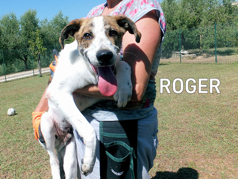 ROGER è un cagnolotto simpaticissimo, sempre sorridente, allegro, pieno di voglia di vivere e di giocare, amante delle persone e delle coccole. Il solito cucciolo indesiderato, tenuto per qualche mese e poi buttato via come spazzatura!
