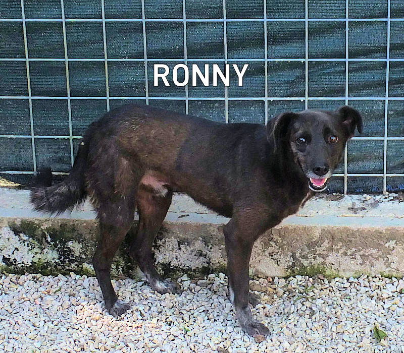 No, a Ronny non possiamo davvero dare nessuna speranza di adozione. E’ un cagnoletto comunissimo, nero, pure timidino , cresciuto in canile e poco abituato alle persone. Abbandonato a neppure tre mesi per la strada, e finito in canile, ha conosciuto solo la solitudine della vita di prigione in quel box.