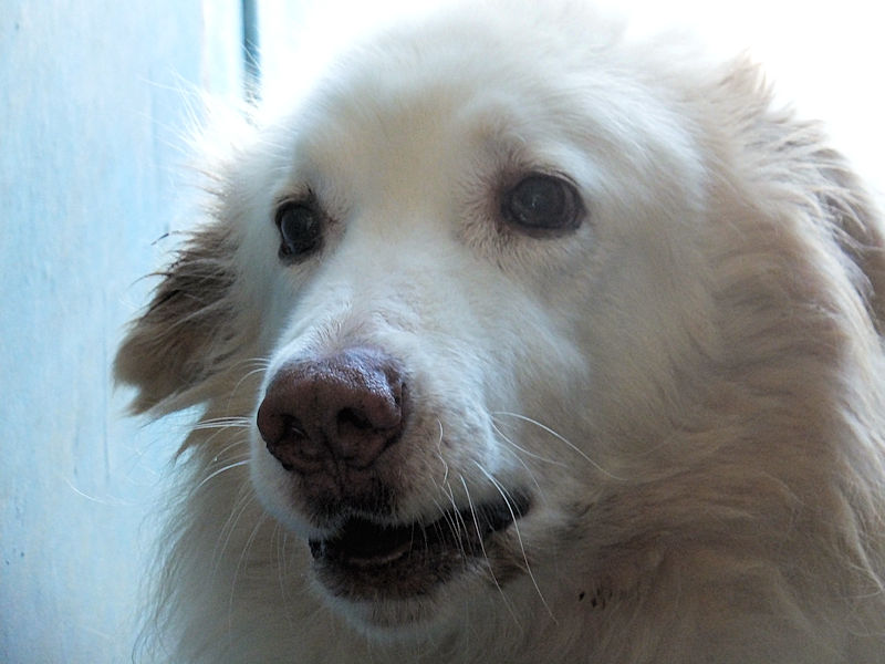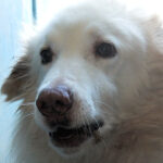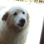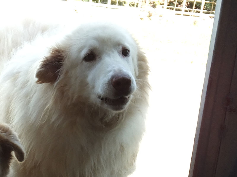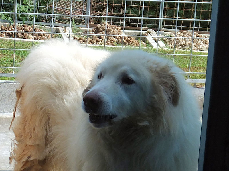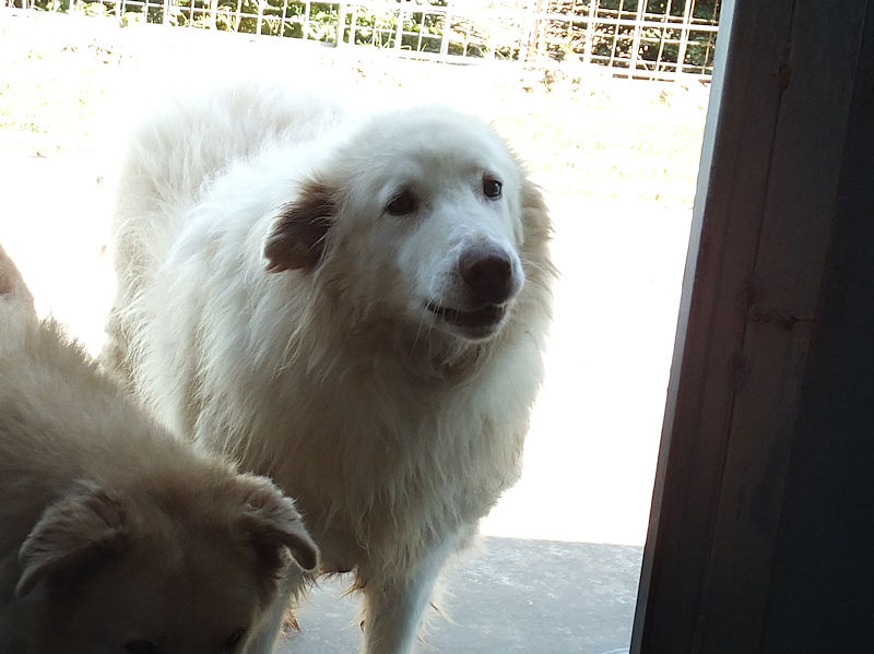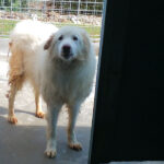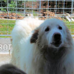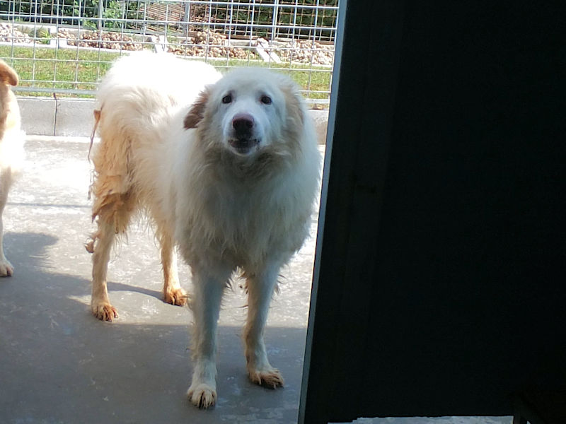 Rot è un maremmano di buona taglia, diciamo sui 40 kg. Nato a gennaio 2019, dopo avere fallito la prova delle pecore è stato scacciato ed è finito in canile a gennaio 2020