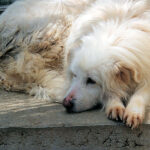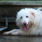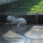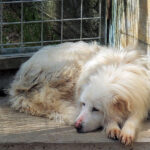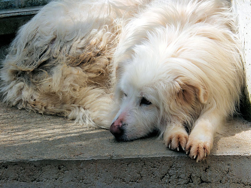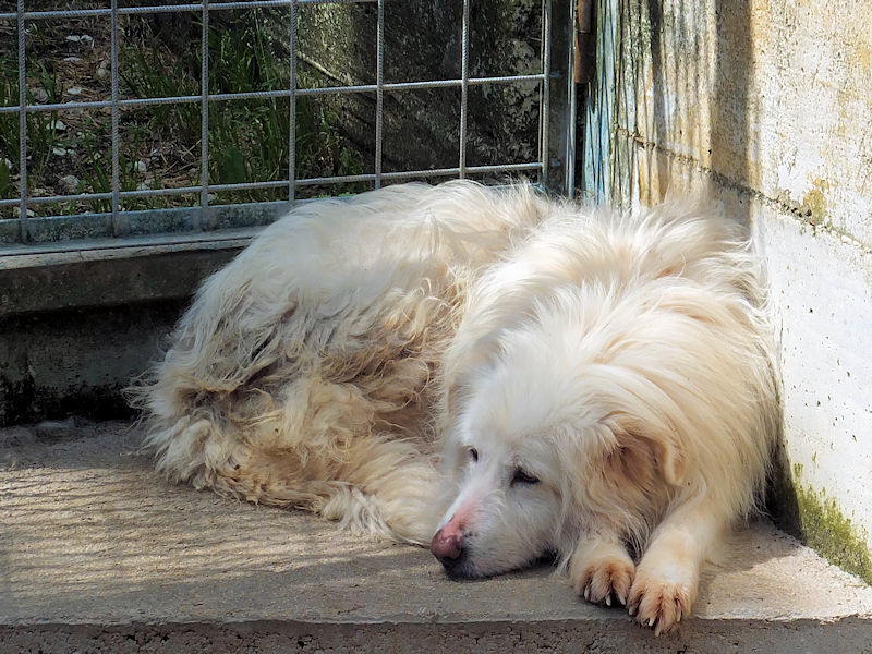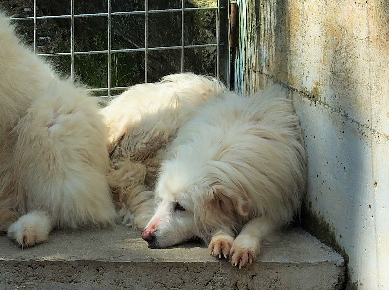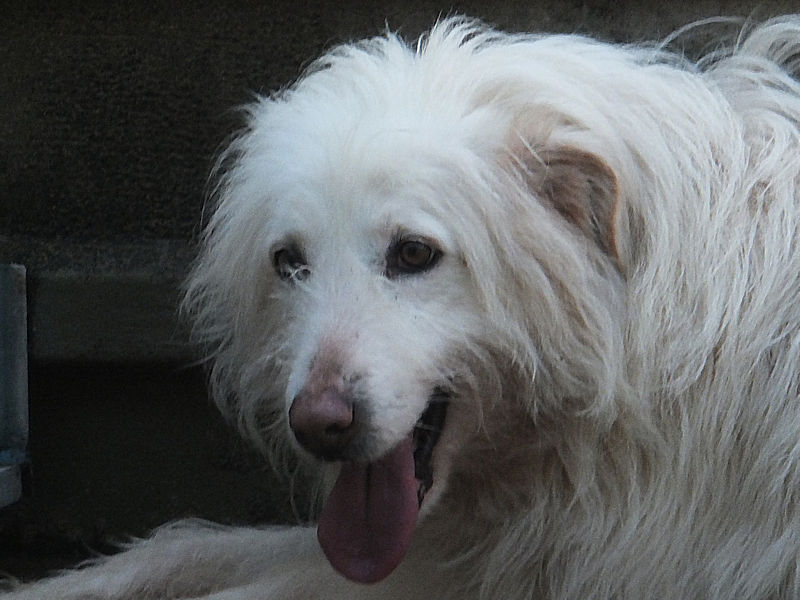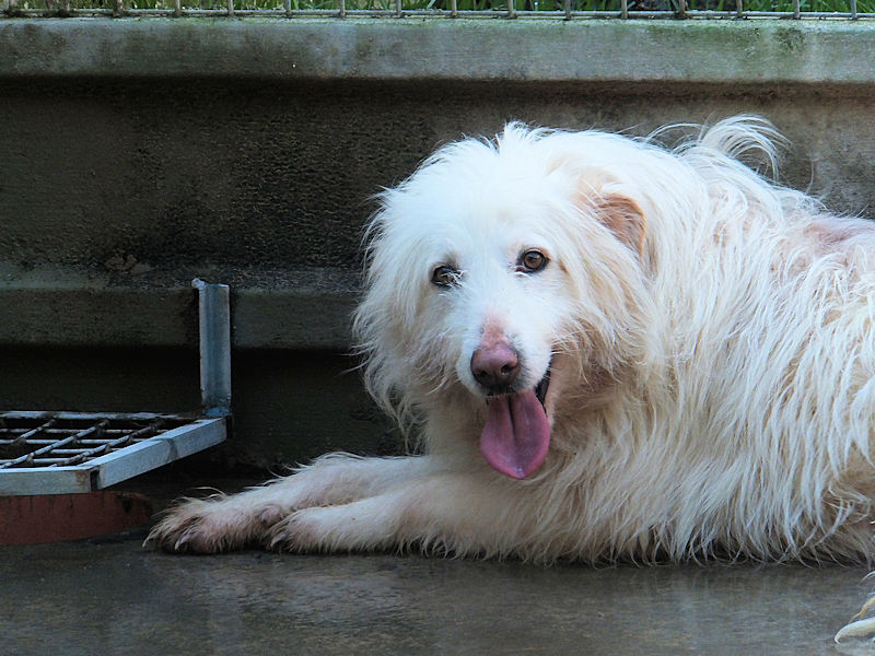 na splendida cagnolona, uno di quei mix che ci stupiscono sempre, tra uno spinone e un maremmano, ossia una bella spinona ma con una taglia sorprendente, almeno 34 kg.