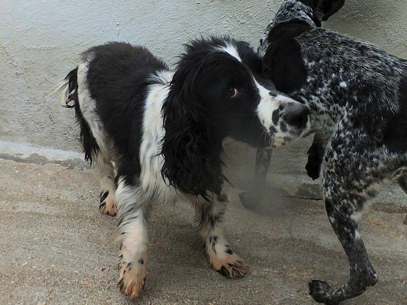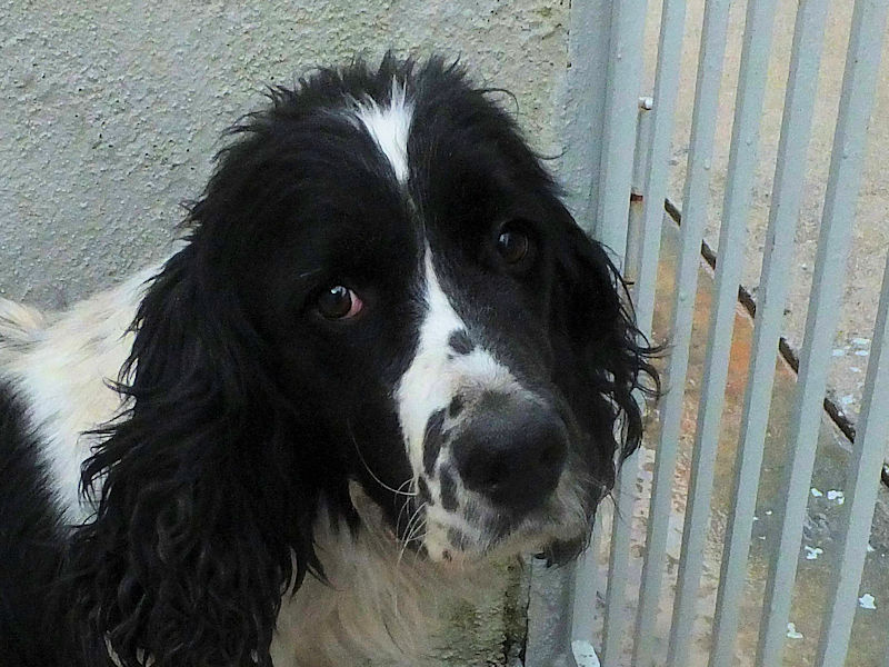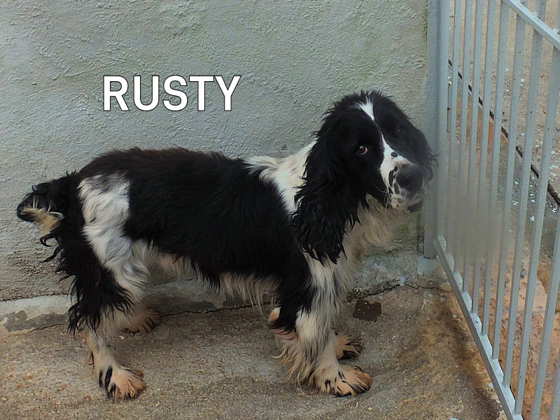 Ed in canile ci ritroviamo Rusty, un Cocker Spaniel bianco nero con lo sguardo ancora un poco smnarrito di chi non ha capito tanto bene cosa sia successo. Un cane di casa, un cane di famiglia che, un giorno, ha perso tutto.