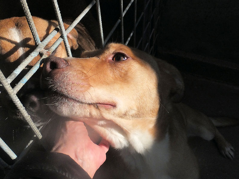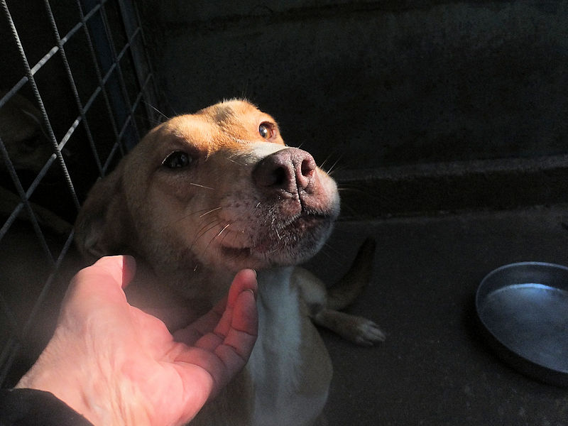 Sarina in quel box ci è finita a due mesi, e per fortuna la mamma era con lei, per questo è cresciuta un poco timidina ma non poi tanto, quando entriamo nel suo box ci accoglie con tanta allegria ed entusiasmo, e solo atratti si vede che non è abituata alle coccole.