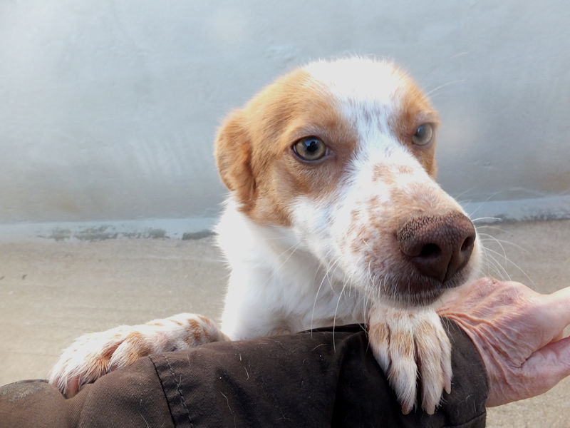 el nostro primo incontro, Scheggia ci è corso incontro come fossimo vecchi amici ritrovati, è stato subito affettuoso e gentile, ha cercato subito la nostra amicizia e le coccole. Anche lui ha un passato triste e non ci vuole poi molto ad intuirlo. Scheggia aveva una casa e una famiglia, una sistemazione nel giardino probabilmente neppure recintato, cosi’ da essere libero di andarsene in giro. Un giorno pero’ deve avere avuto un incidente, un investimento, e, pour con due zampe rotte, è riuscito a tornare a casa. Beh, chi ama il proprio cane avrebbe dovuto portarlo subito dal veterinario per le cure, ma in certe zone non si spendono soldi per il proprio cane, che si arrangi da solo. Poi un giorno hanno deciso che non lo volevano neppure piu’ , e Scheggia è finito per la strada.