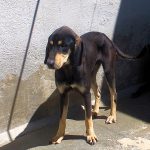 Schizzo è un bel segugio di taglia media, sui 25 kg. nato nel 2018  e finito abbandonato per la strada e poi in canile a gennaio 2021.