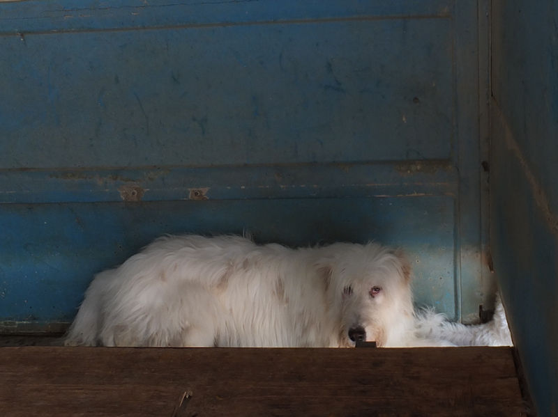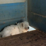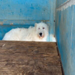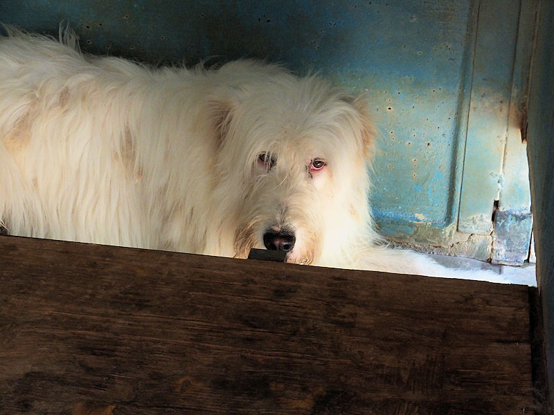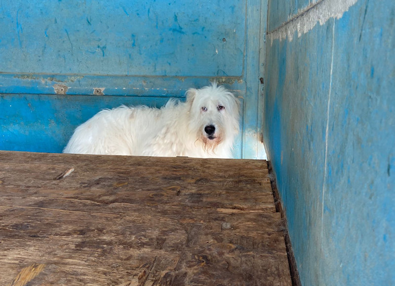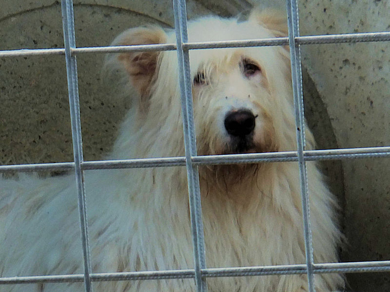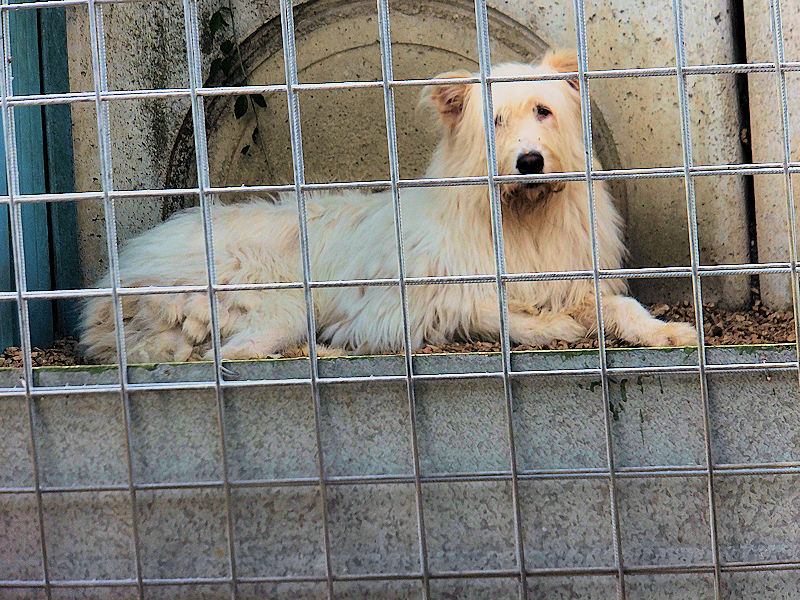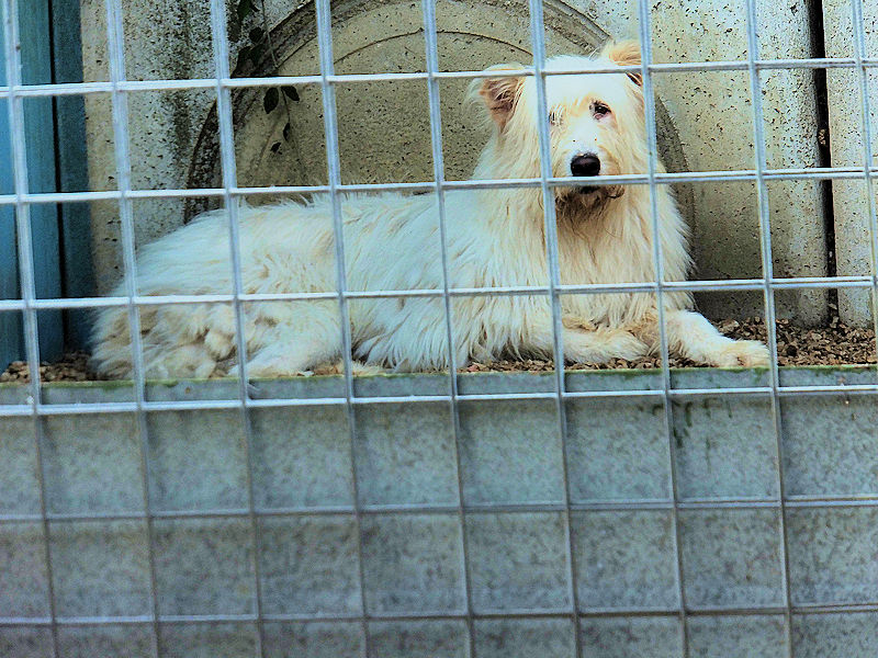 Continuiamo a trovare nei vari canili della provincia di Frosinone dei cani  bellissimo, uno spinone  tutto bianco e tanto  impaurito.    Spinello è un bel cane, ma quando siamo arrivate al suo box   era disinteressato, sembrava indifferente e persino depresso, quando ci siamo avvicinate se l’è’ subito svignata e si è nascosto nel box. .