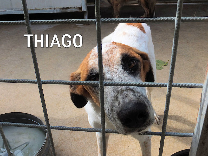 Passano i mesi e passano gli anni, e Thiago è sempre li in attesa che qualcuno si innamori delle sue faccette buffe, della sua socievolezza, del suo essere un cane come tanti, un cane normale. Lui va bene d’accordo con  femmine, e maschi, condivide il box con  Patato, un bel cagnolone maschio molto tranquillo