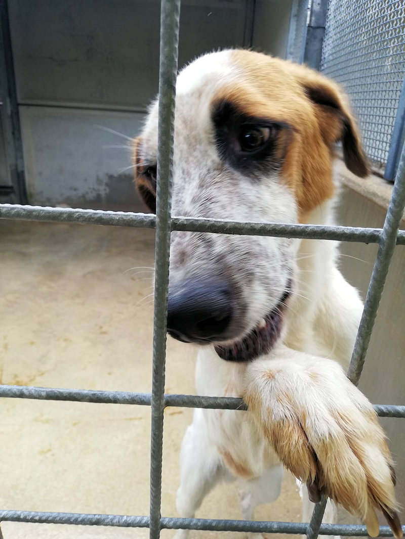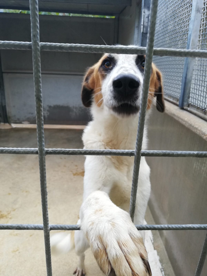 Thiago bel maschietto un po’ bracchetto alla Snoopy è stato scaricato ad un anno e mezzo, la sua storia è la stessa di tanti troppi cani tenuti senza amore e senza coscienza, da persone che prima si prendono un cucciolo in una delle tante cucciolate casalinghe indesiderate e poi, si stufano e buttano via il cane che fino al giorno prima carezzavano, ma con la mano del traditore.