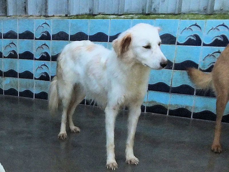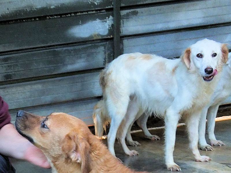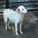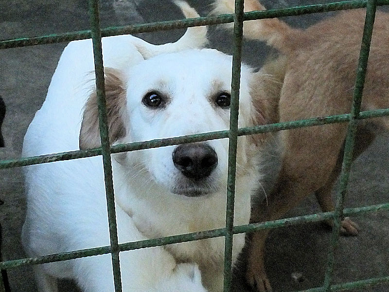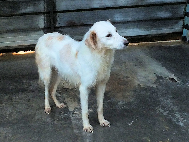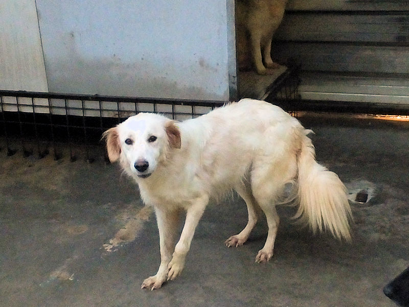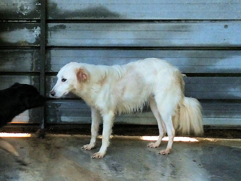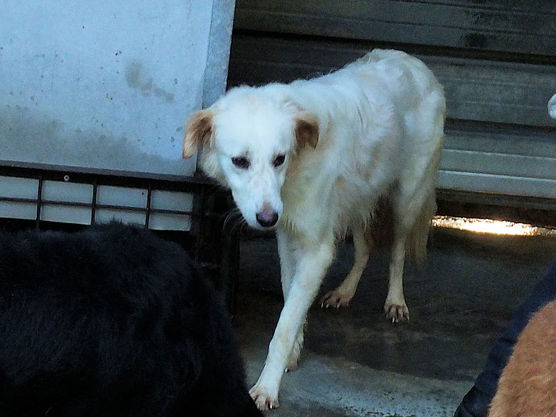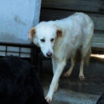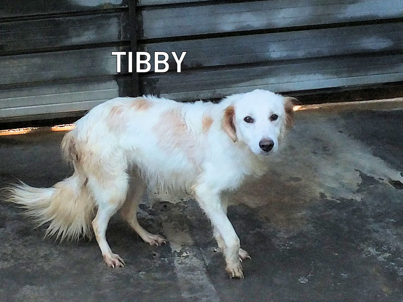 Tibby bela cagnolotta di taglia media sui 22-24 kg è  un incrocio molto setter con dentro un pizzico soltanto di maremmano. Nata a maggio 2024, a luglio 2024 era gia’ finita in un box di canile.