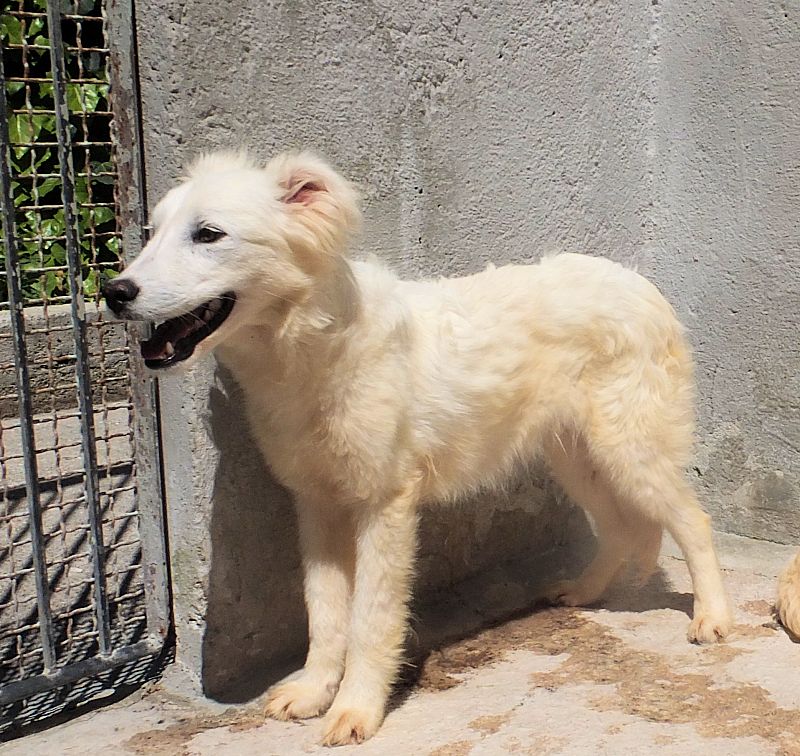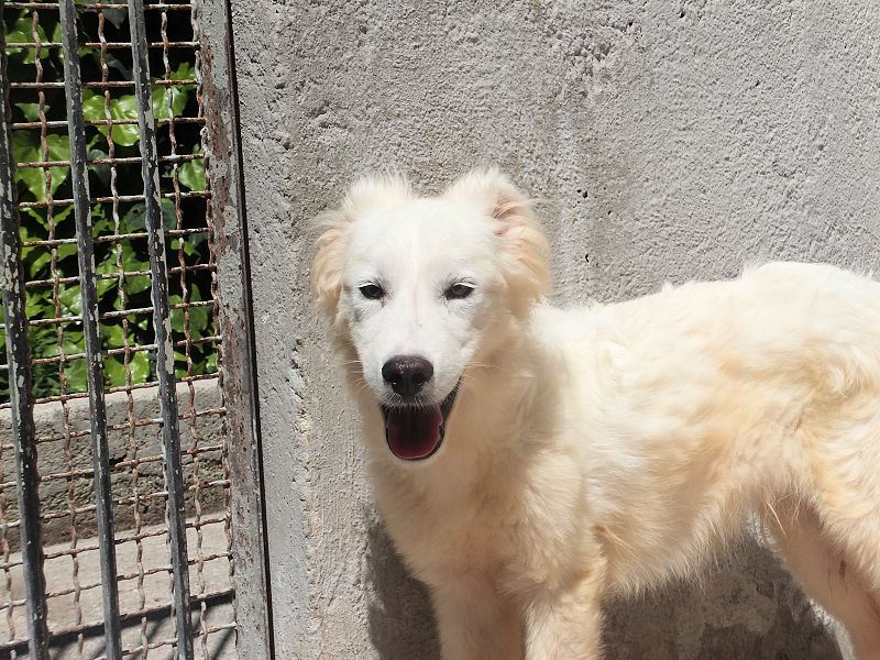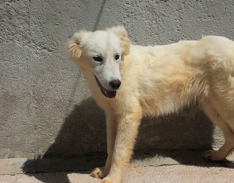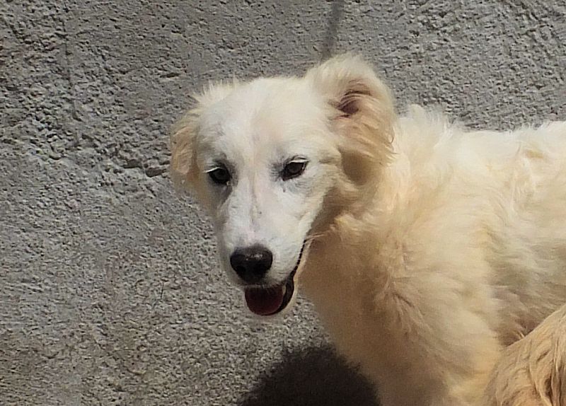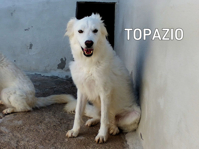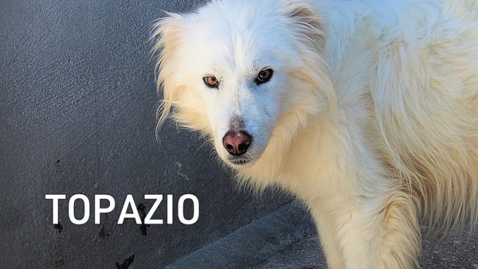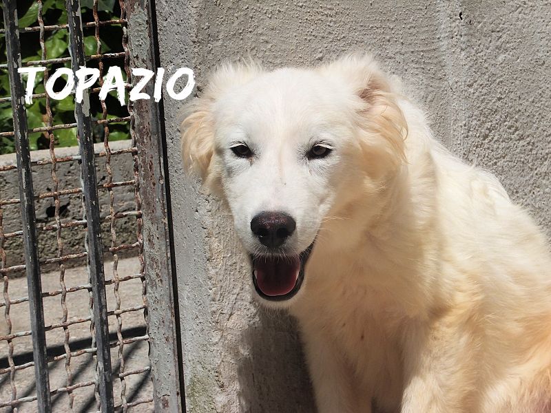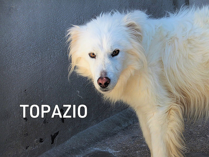 Topazio  bellissimocagnolotto tipo t Golden bianco , una vera meraviglia. Trovato abbandonato in strada da cucciolissimo, nato senza dubbio nella casa di chi non ha voluto sterilizzare la sua mamma, in una zona dove tutti lasciano i propri cani, tutti rigorosamente senza microhip e non sterilizzati, liberi di girovagare per le campagne. Il risultato sono innumerevoli cucciolate indesiderate, una quantita’ impressionante di cuccioli che vengono abbandonati per le campagne destinandoli a morte certa.