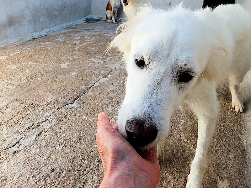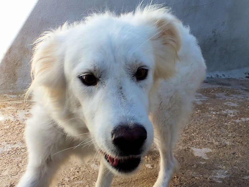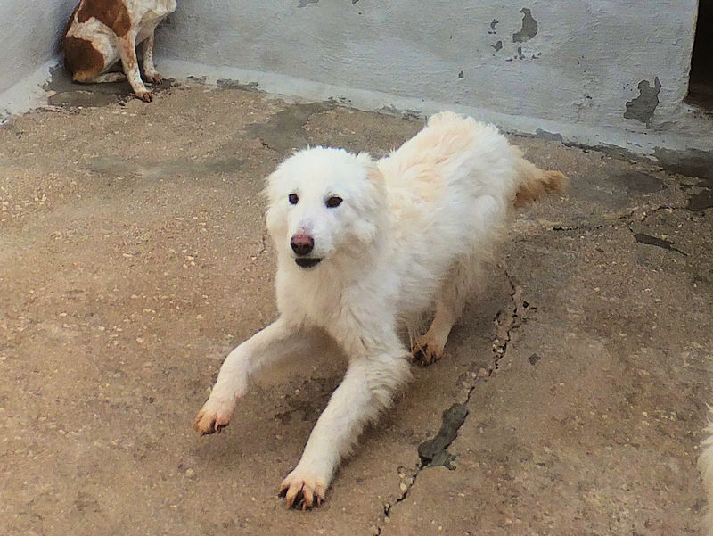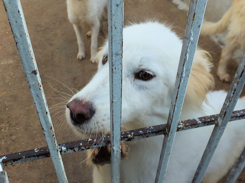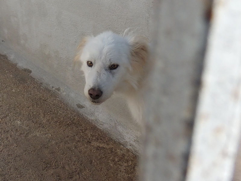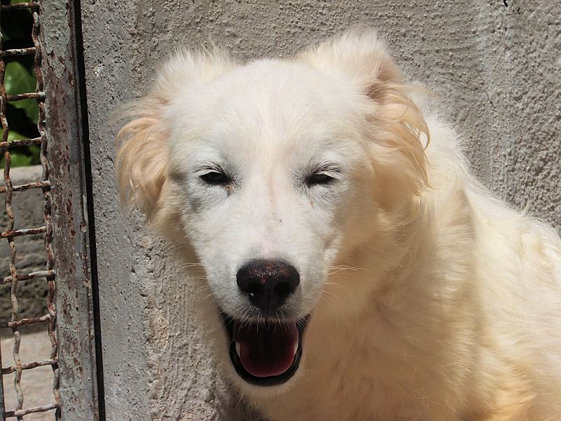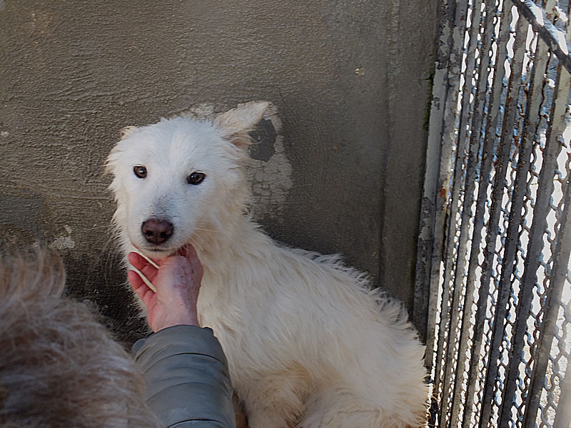 Topazio  bellissimocagnolotto tipo t Golden bianco , una vera meraviglia. Trovato abbandonato in strada da cucciolissimo, nato senza dubbio nella casa di chi non ha voluto sterilizzare la sua mamma, in una zona dove tutti lasciano i propri cani, tutti rigorosamente senza microhip e non sterilizzati, liberi di girovagare per le campagne. Il risultato sono innumerevoli cucciolate indesiderate, una quantita’ impressionante di cuccioli che vengono abbandonati per le campagne destinandoli a morte certa.